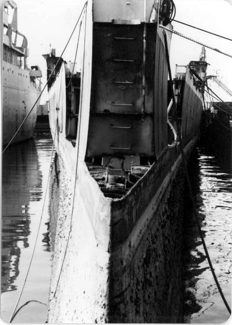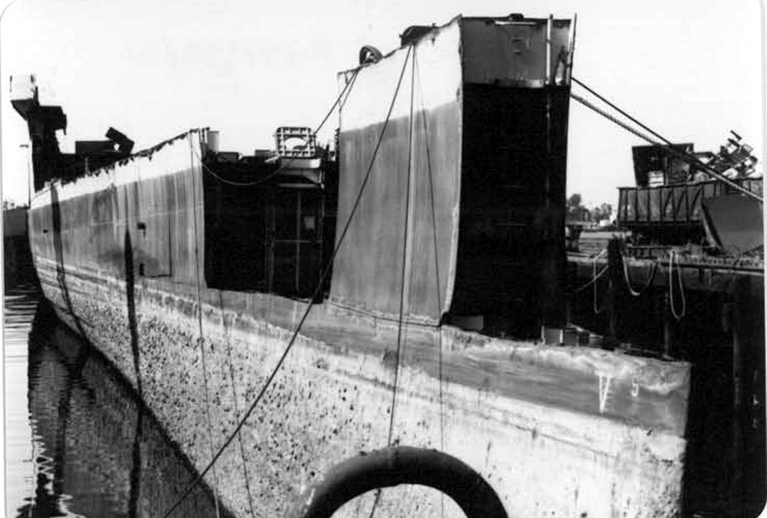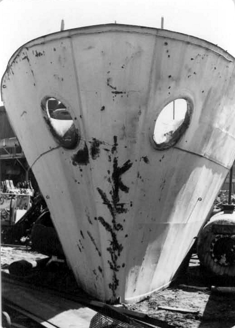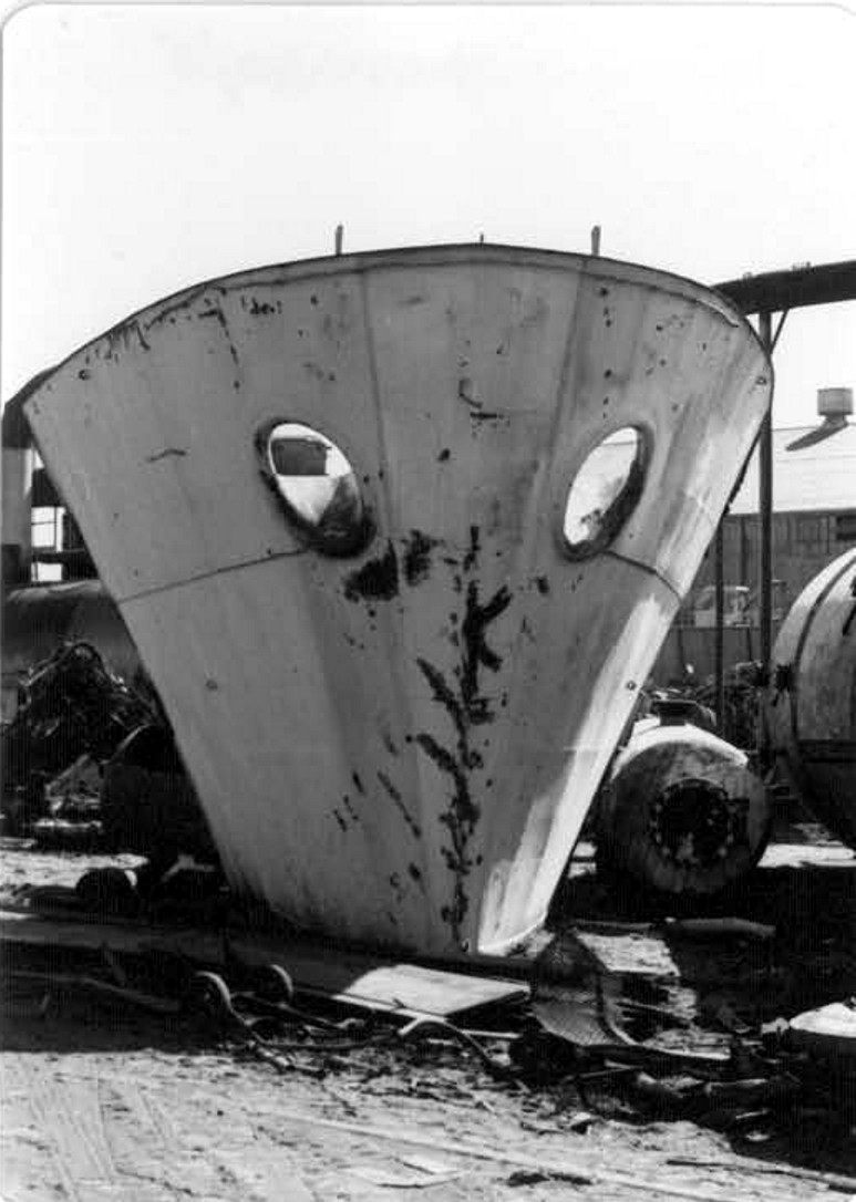 The hull with most of the bow removed. U.S. Navy Memorial Foundation Collection: David L. Martineau Papers |
