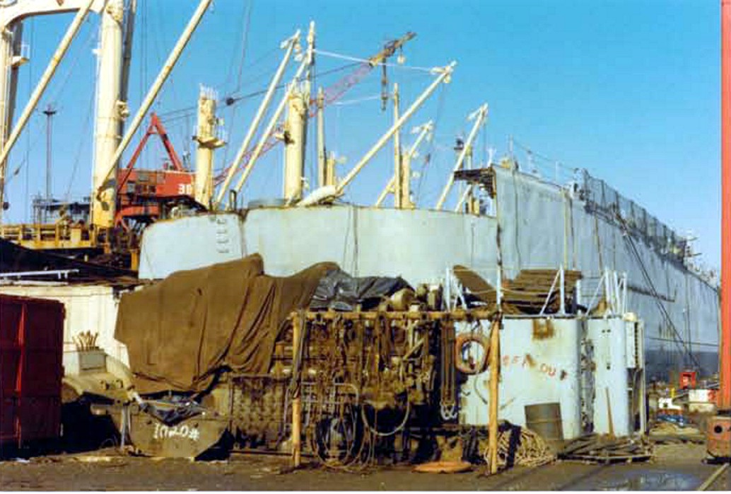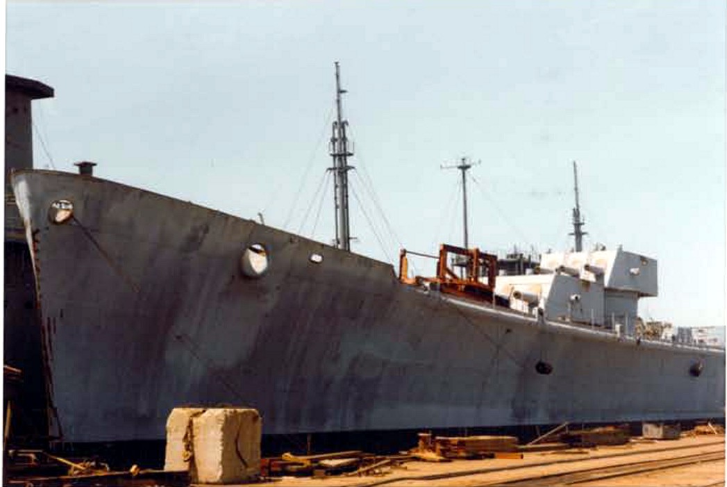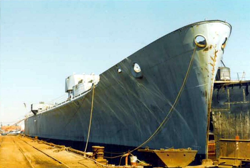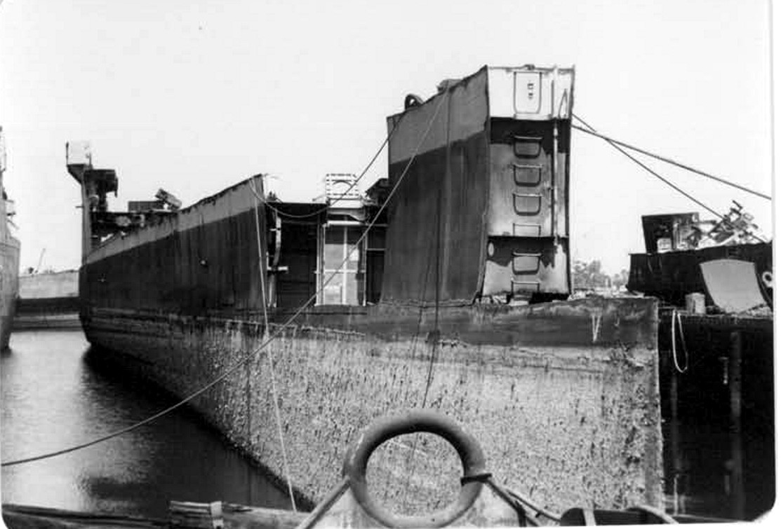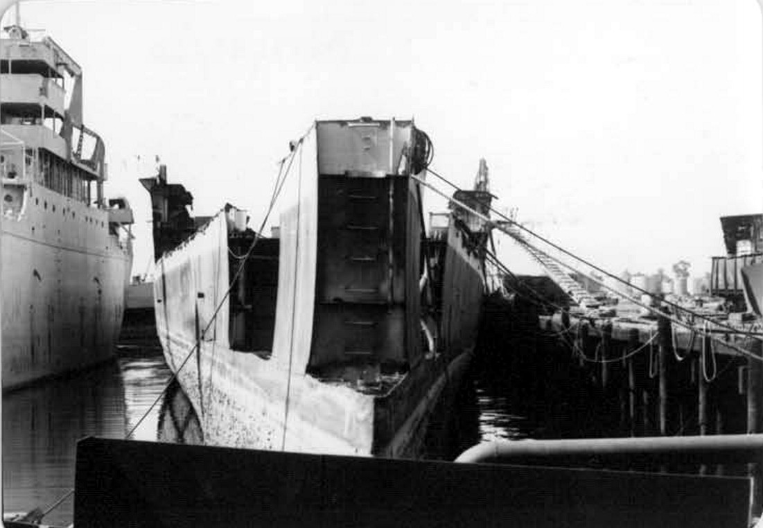 The hull with most of the bow removed. U.S. Navy Memorial Foundation Collection: David L. Martineau Papers |