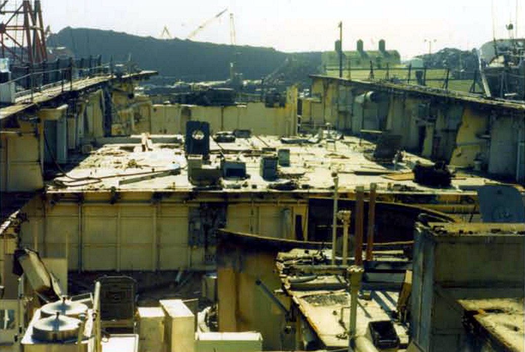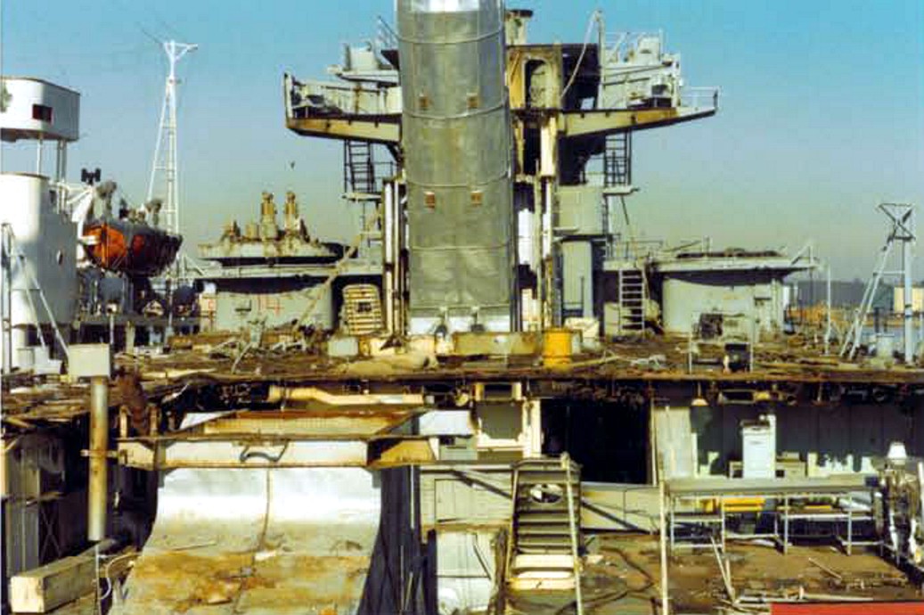 The stern of the Ex-Los Angeles. The main deck has already been removed. U.S. Navy Memorial Foundation Collection: David L. Martineau Papers |