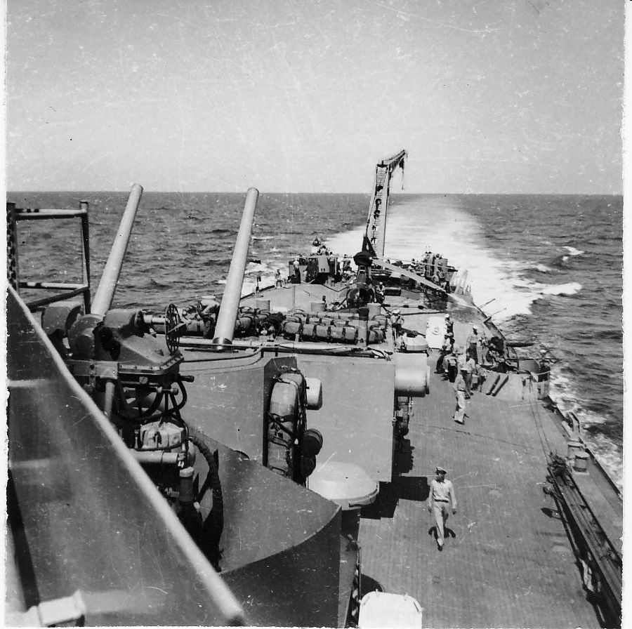 Looking forward from the starboard signal bridge. U.S. Navy Memorial Foundation Collection: David L. Martineau Papers |