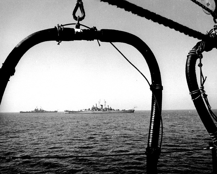 129k | USS Columbus (CA 74) (left) and USS Salem (CA 139) (right), as seen from USS Baltimore (CA 68) in 1952. | George Panos Ex QMS 2/C |