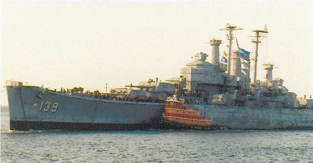 55k | Salem being helped by tug on her "Sail Day" in 1995. | USN | |