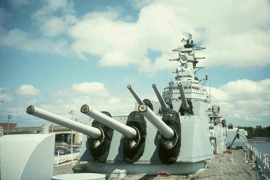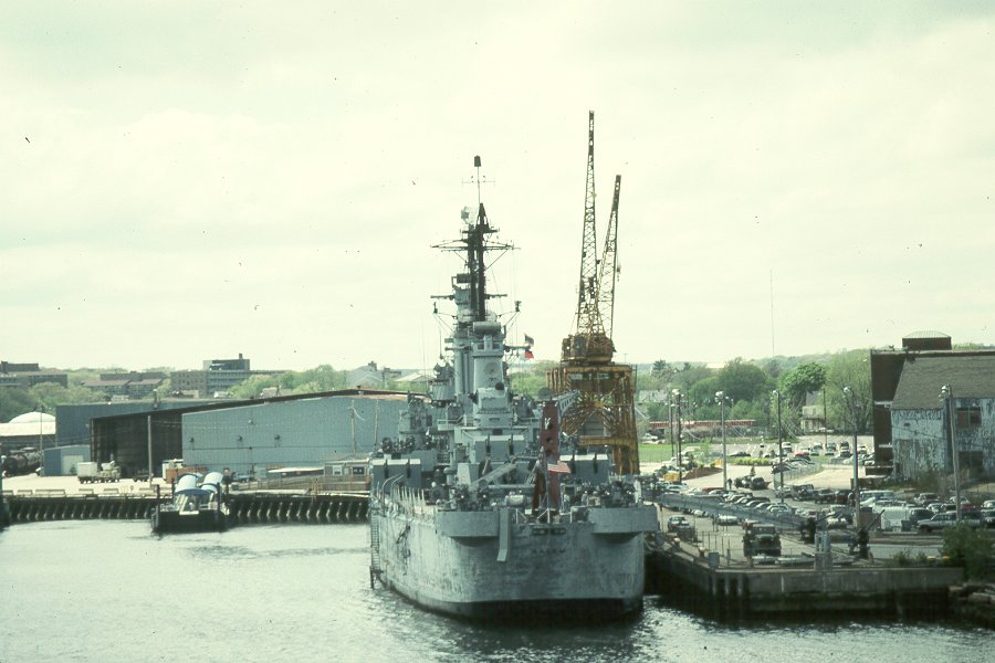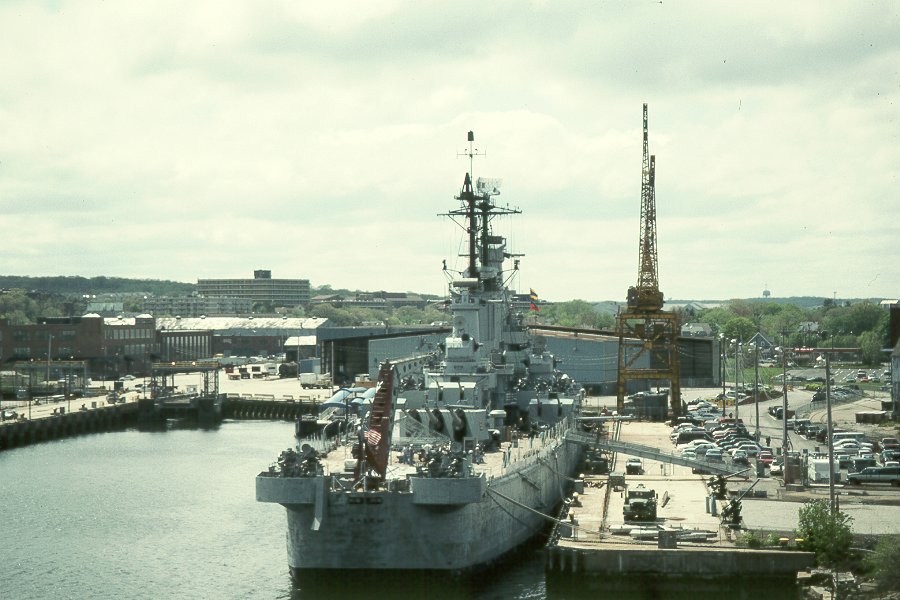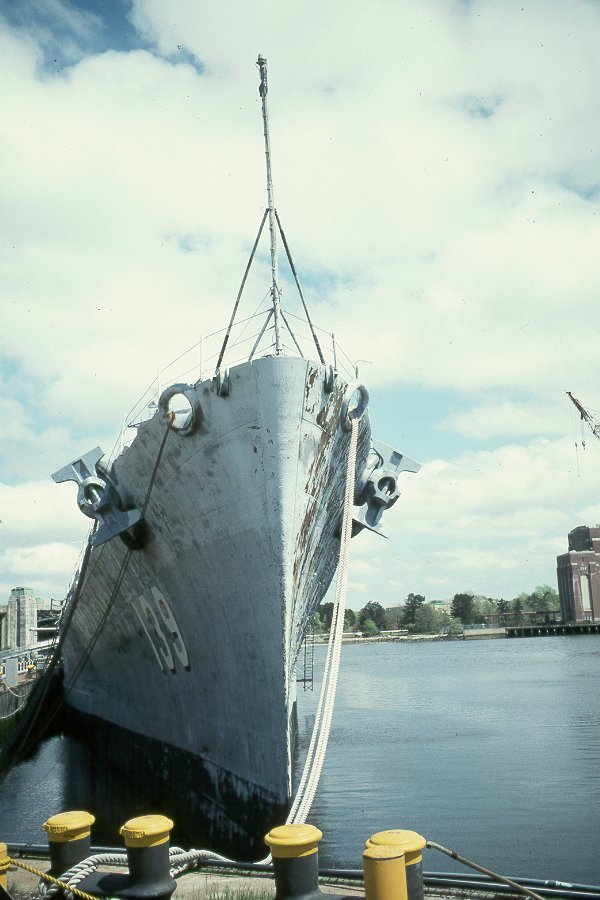 55k | Passing through the Fore River old bridge on her way to becoming a museum, 1995. Photo by Ed Adamson |