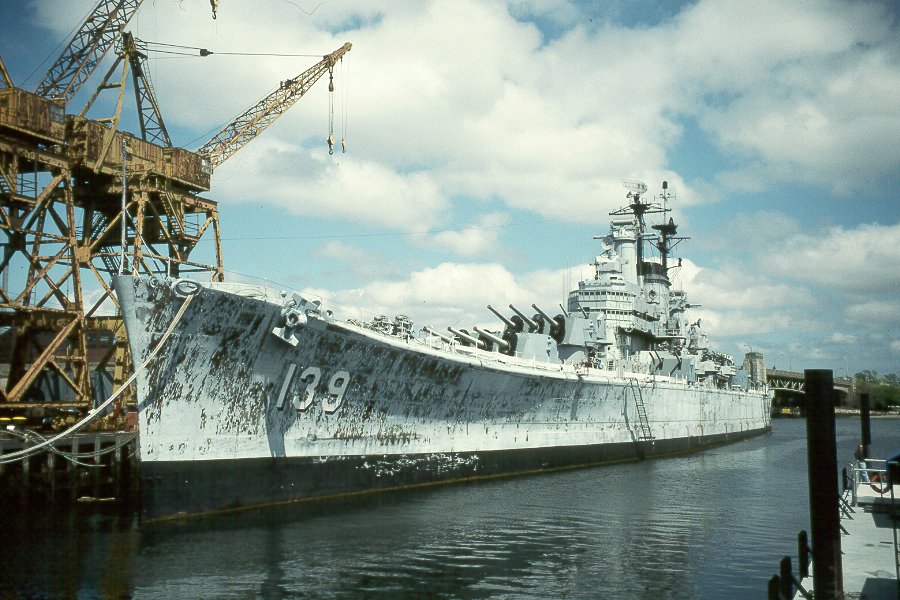 CLASS - DES MOINES Displacement 17,000 Tons, Dimensions, 716' 6" (oa) x 76' 4" x 26' (Max) Armament 9 x 8"/55, 12 x 5"/38AA, 24 x 3"/50, 24 x 20mm, 4 Aircraft Armor, 6" Belt, 8" Turrets, 3 1/2" Deck, 6 1/2" Conning Tower. Machinery, 120,000 SHP; G. E. Geared Turbines, 4 screws Speed, 33 Knots, Crew 1799. Operational and Building Data Keel laid on 04 JUL 1945 by the Bethlehem Steel Co., Quincy, MA Launched 25 MAR 1947 Commissioned 14 MAY 1949 Decommissioned 30 JAN 1959 Stricken 1 JUL 1991 Fate: Donated as a Museum ship OCT 1994 |