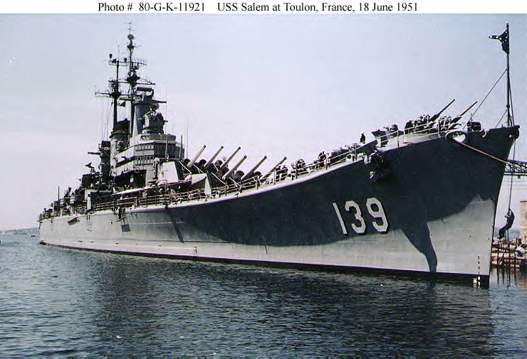 USS Salem (CA 139) at Toulon, France, 18 June 1951. Official U.S. Navy Photograph, now in the collections of the National Archives. |