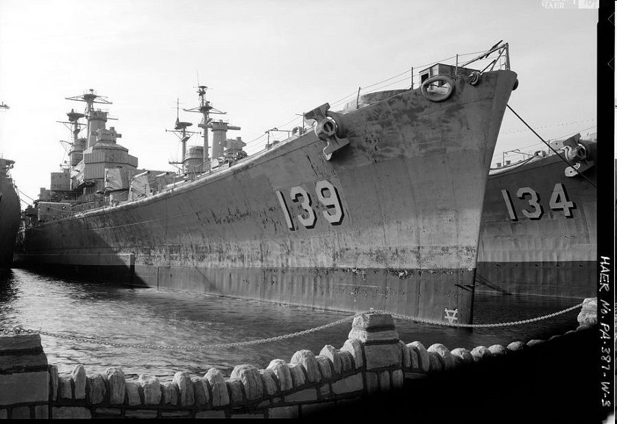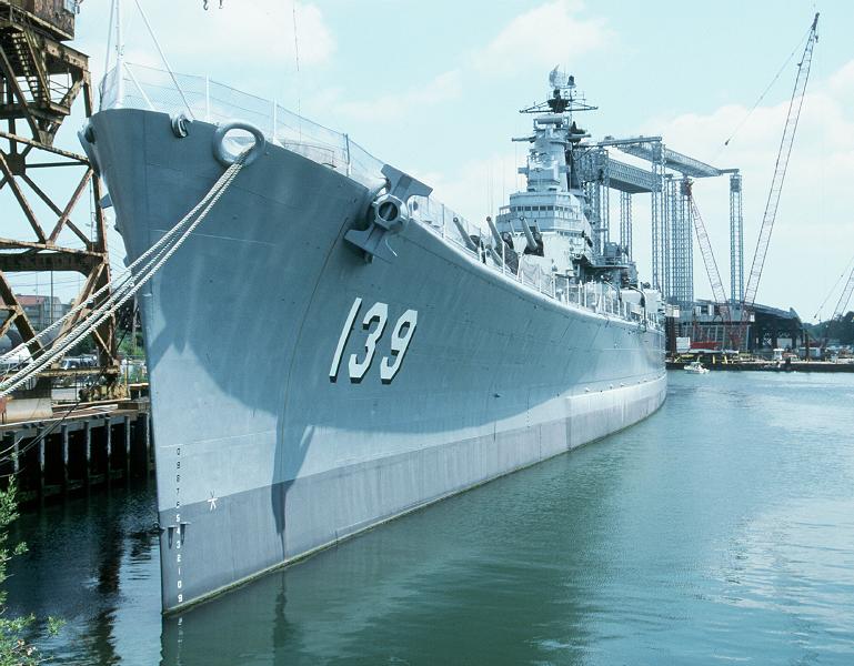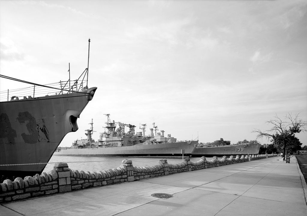 USS Salem (CA 139) with the USS Des Moines (CA 134) moored to her port side at the Philadelphia Navy Yard Reserve Basin circa 1995. Library of Congress, HAER PA,51-PHILA,709W3 |