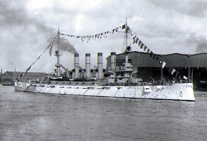 426k | Undated WWI image of the armored cruiser North Carolina (ACR 12) underway in wartime camouflage, location unknown. | Robert Hurst | |