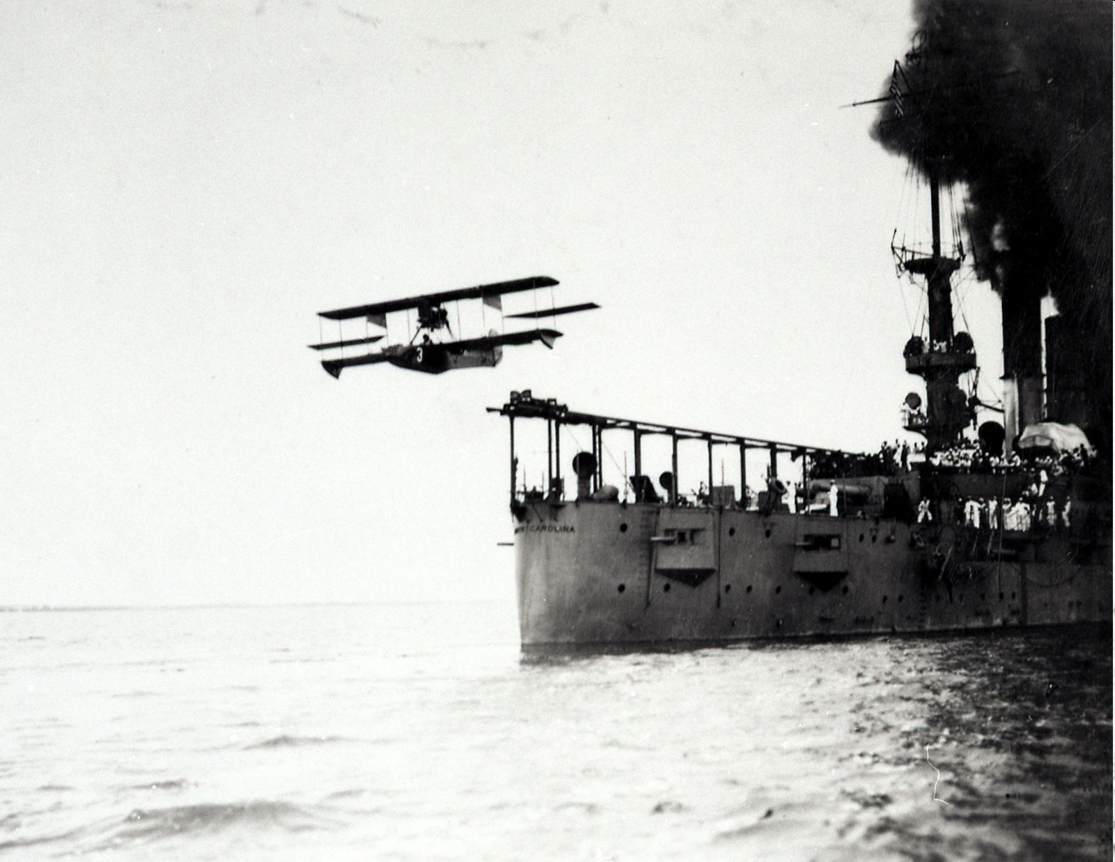Curtiss F Boat (AB-2) level with the North Carolina (ACR 12) after leaving her on 12 July 1916. National Archives Identifier 496082424 & Local Identifier 111-SC-52385 via catalog.archives.gov |