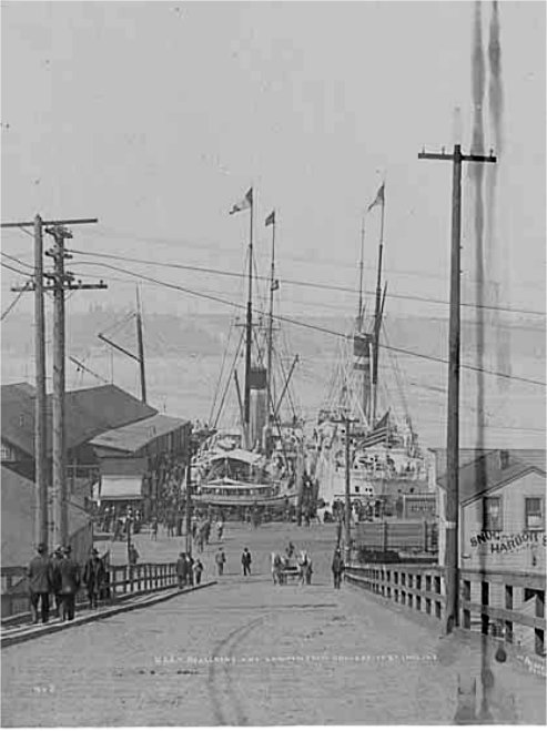 61k | USAT Lawton at Arlington Dock in Seattle, probably 1900. Peiser 1 PH Coll 282.157. Theodore E. Peiser Photographs. University of Washington: Special Collections. 190. | Robert Hurst | |