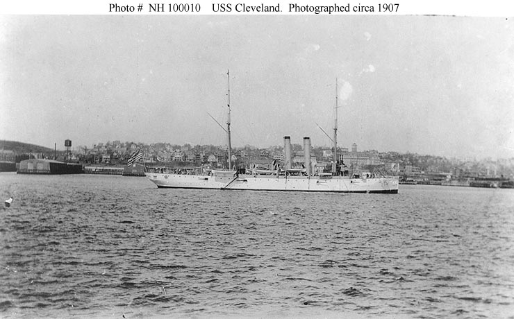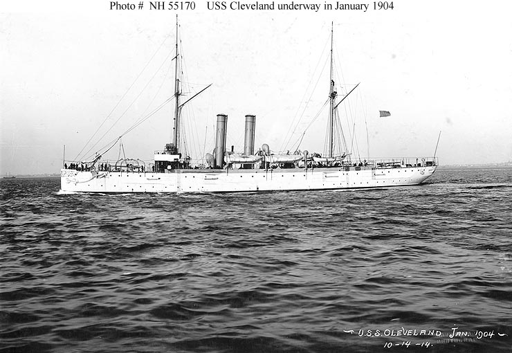 USS Cleveland (Cruiser No. 19) Underway in 1904. U.S. Naval Historical Center Photograph #NH 55170. |