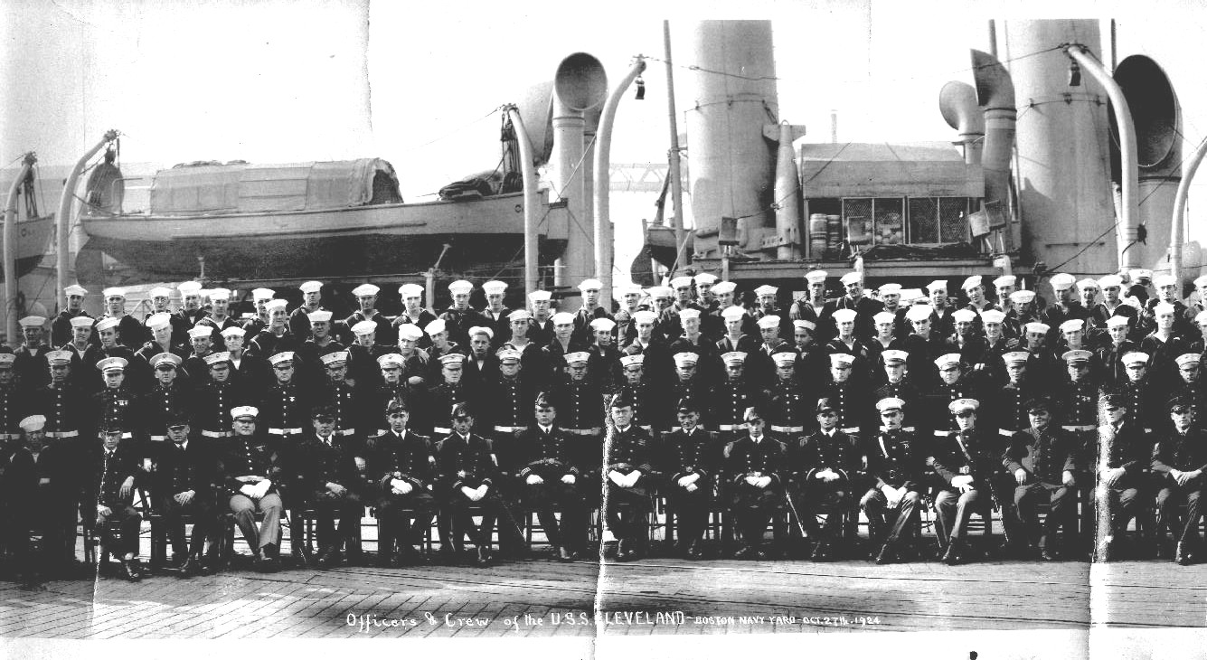 299k | Right section of a photograph of the crew of the USS Cleveland (CL 21) at the Boston Navy Yard, 27 October 1924. The original photo is 3 feet long. From the collection of the North Haven Historical Society, North Haven Island, ME. | Samuel H. Beverage | |