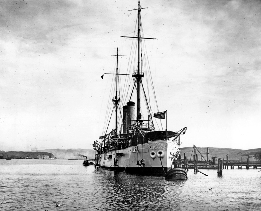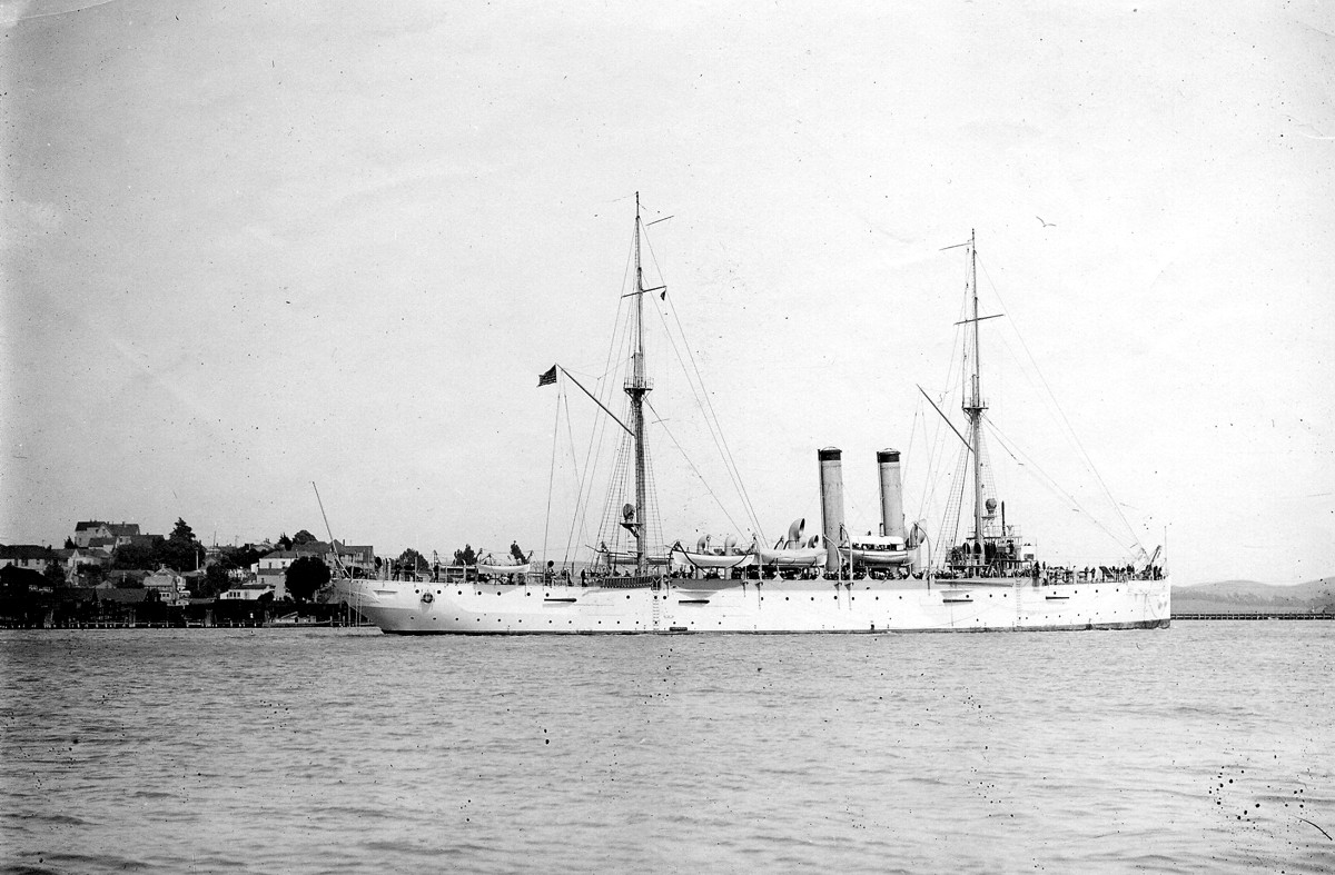 USS Cleveland (Cruiser No. 19) moored at Mare Island in 1914 acting as the shipyard's receiving ship. U.S. Navy photo |
