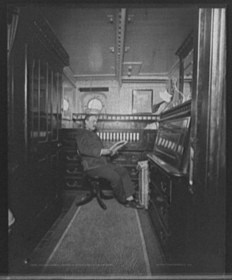 255k | Cincinnati (C-7) Executive Officer Kelley in his room, circa 1890 and 1901. Photo by Edward H. Hart, Detriot Publishing Company Photo # det 4a28212 via loc.gov |