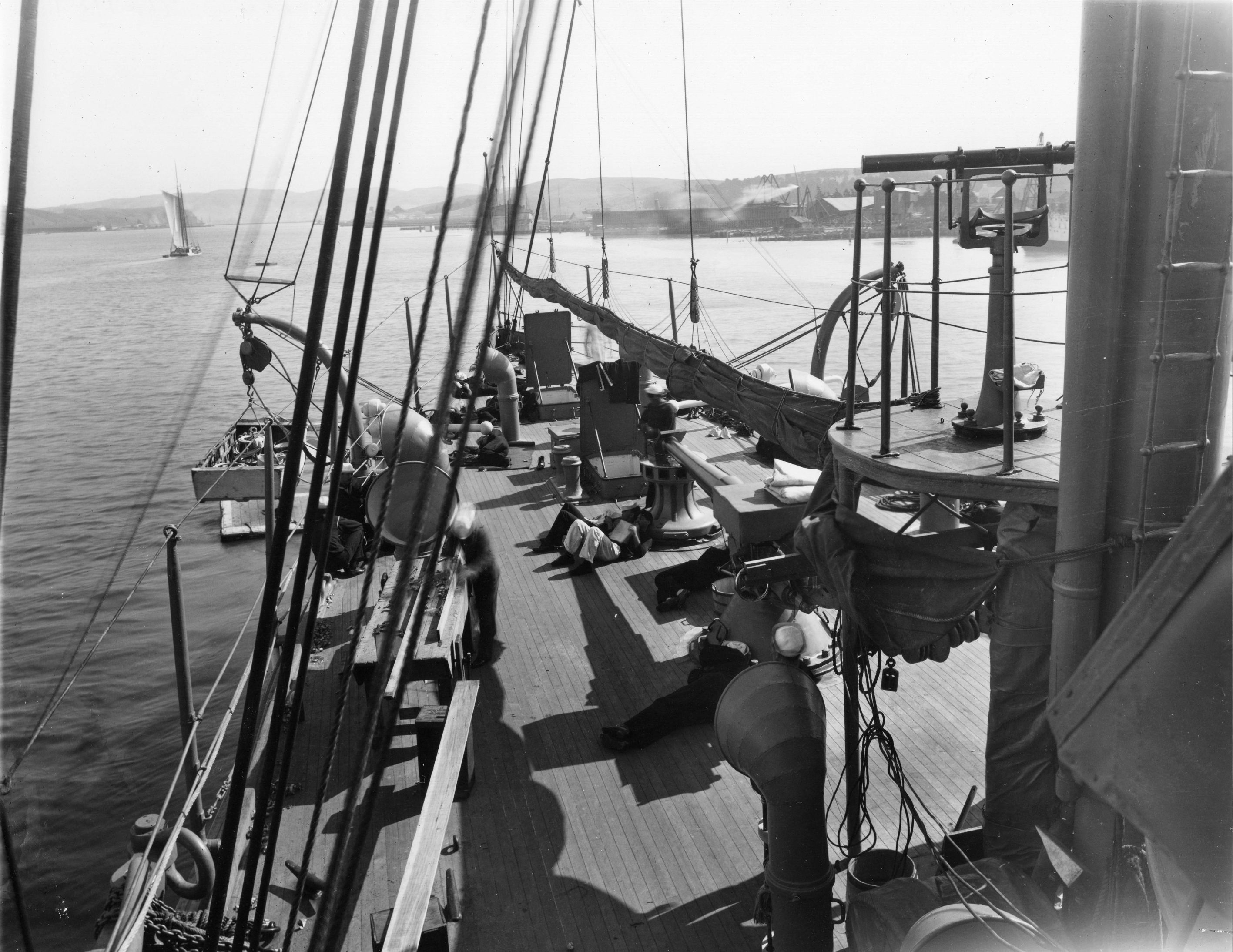 772k | Looking forward while at anchor at Mare Island on 27 September 1907. | Darryl Baker | |