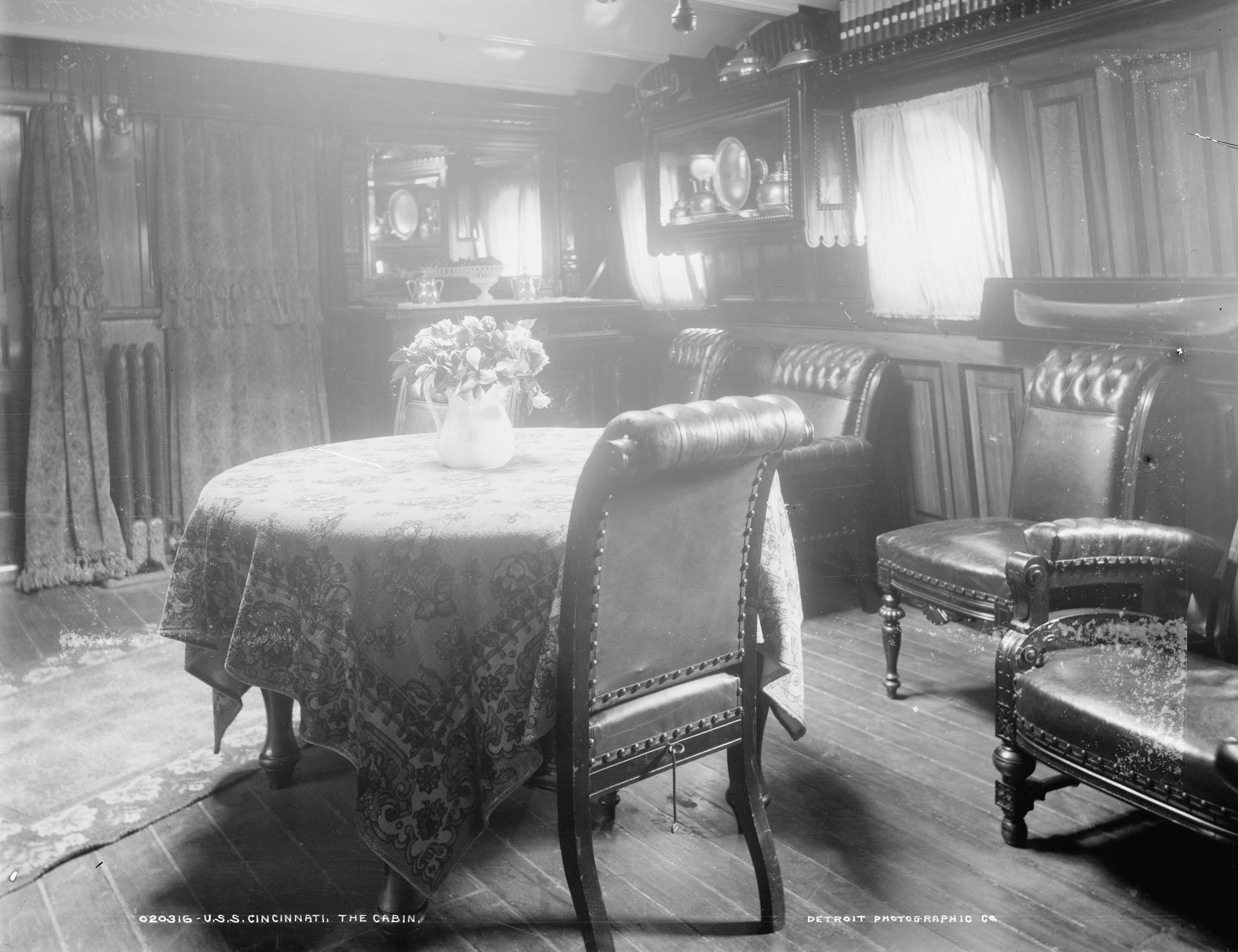 978k | The cabin of Cincinnati (C-7) , 1894. Photo by Edward H. Hart, Detriot Publishing Company Photo # det 4a14178 via loc.gov |