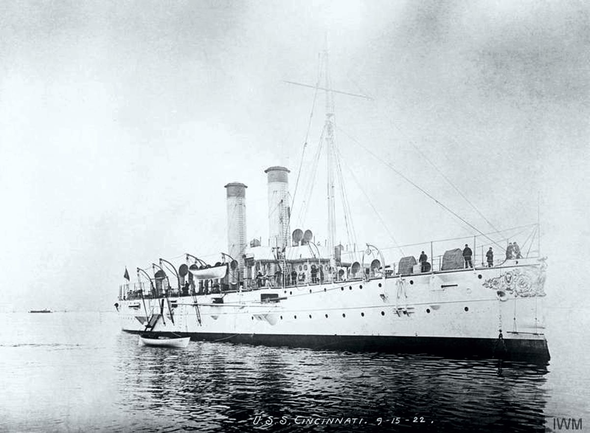 141k | Undated starboard bow view of the Cincinnati (C-7) . Imperial War Museum American First World War Official Exchange Collection, Photo #Q58254. |