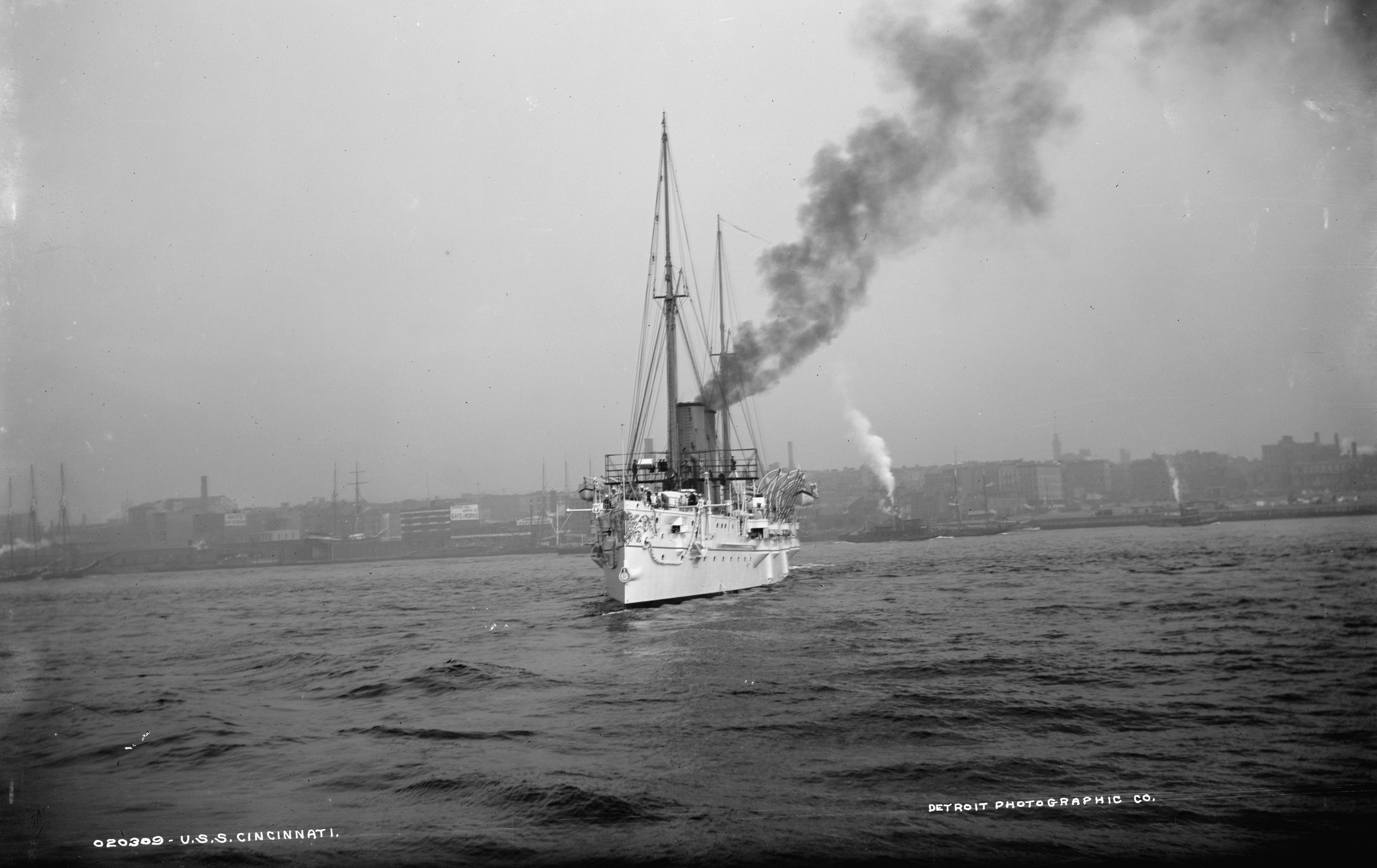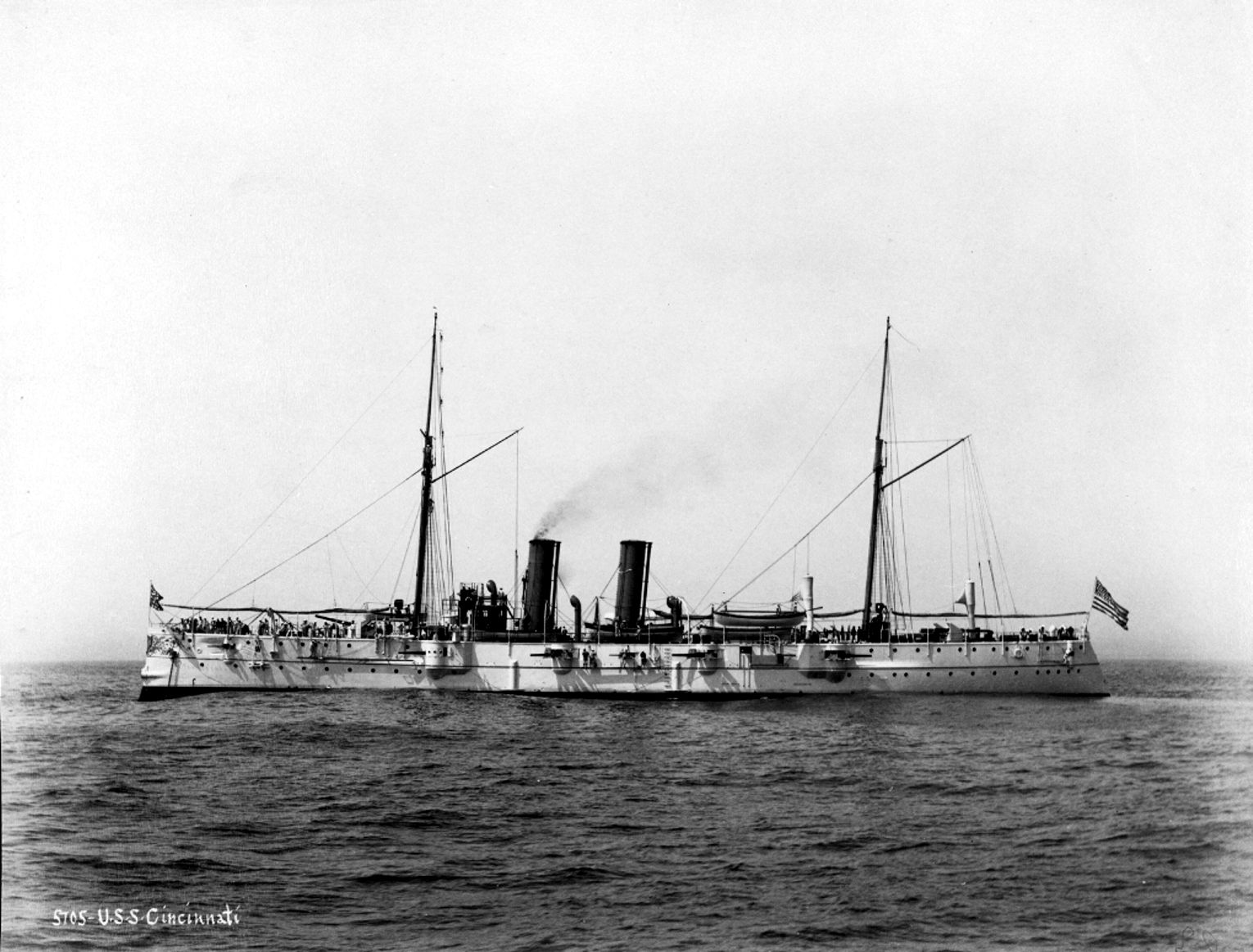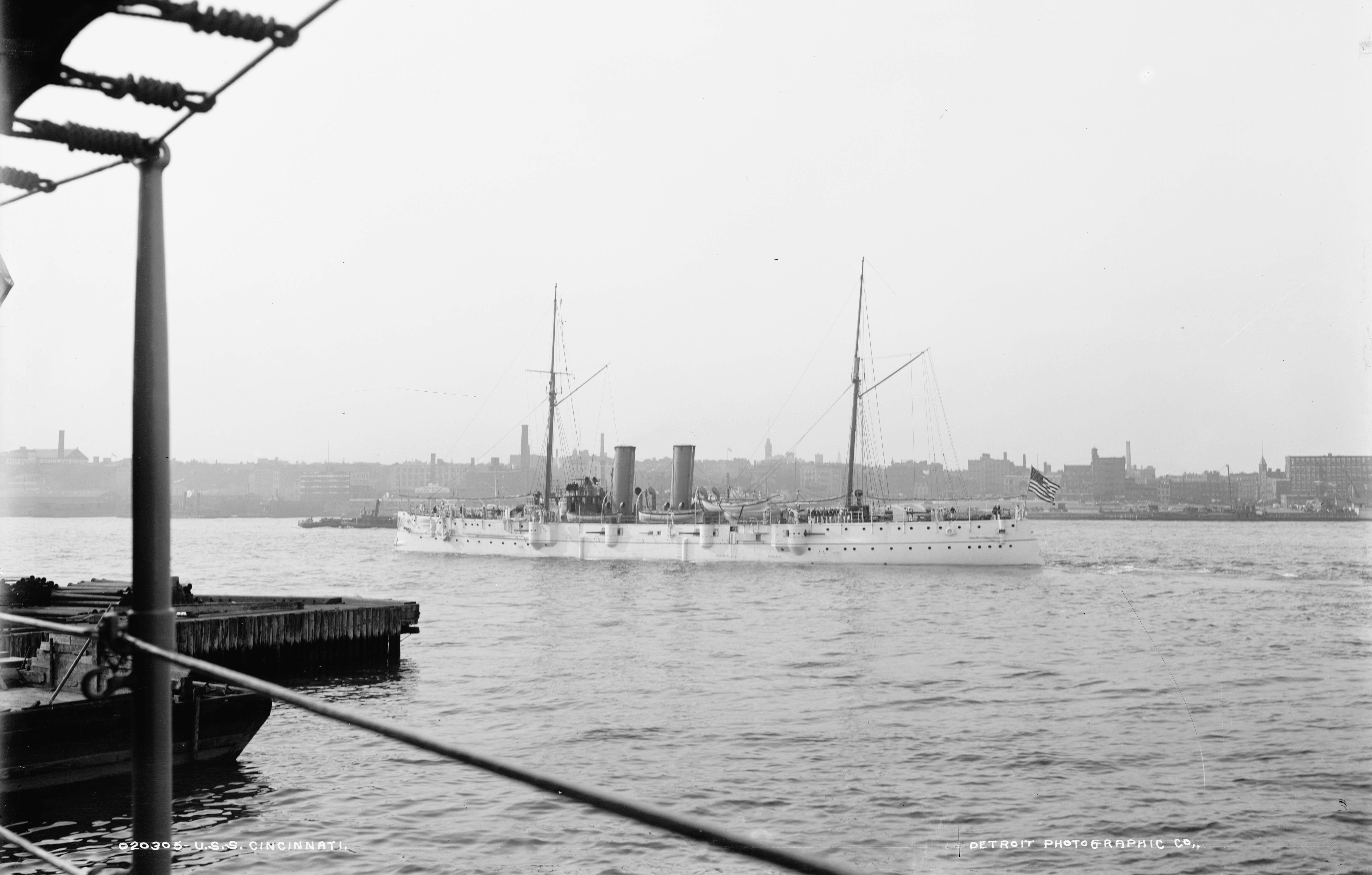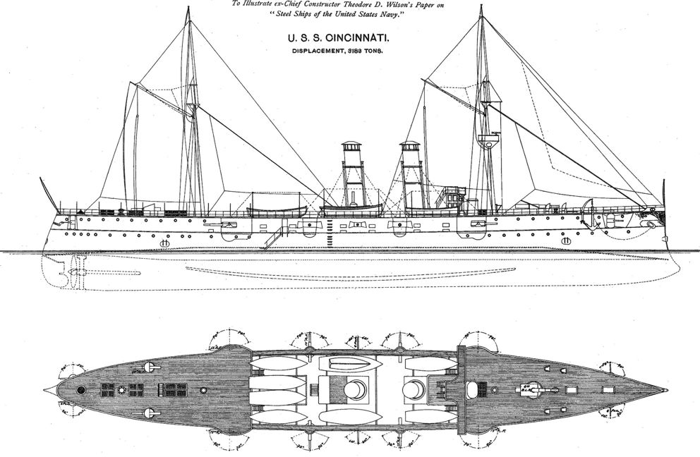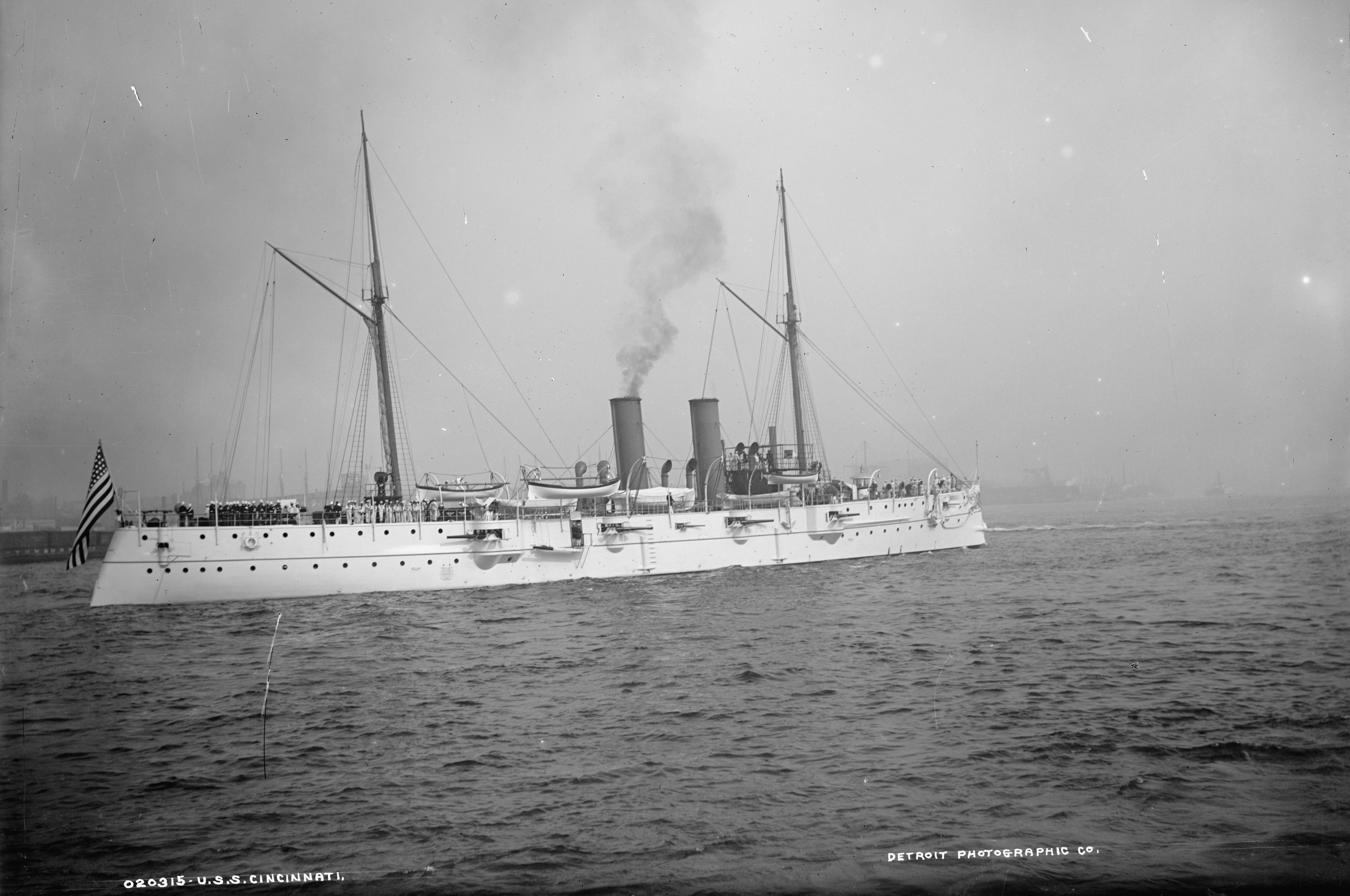 3.67k | Starboard quarter view of Cincinnati (C-7) , circa 1894. Photo by Edward H. Hart, Detriot Publishing Company Photo # det 4a14177 via loc.gov |