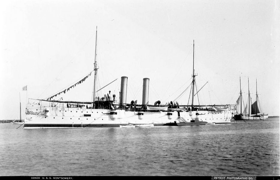 NR | A BATTLE BETWEEN CRUISERS FOUGHT Montgomery Engaged Some Spaniard Off Hayti. BELIEVED THE VIZCAYA. THE CRUISER MONTGOMERY The Montgomery is an unprotected cruiser of 3,080 tons displacement, the cost $612,500 and has a speed of 19.5 knots. She carries nine 5 inch rapid fire guns and ten smaller guns. | Image and text provided by Washington State Library; Olympia, WA. Photo from The Seattle Post-Intelligencer. [volume] (Seattle, Wash. Terr. [Wash.]) 1888-1914, 09 May 1898, Image 1, via chroniclingamerica.loc.gov. |