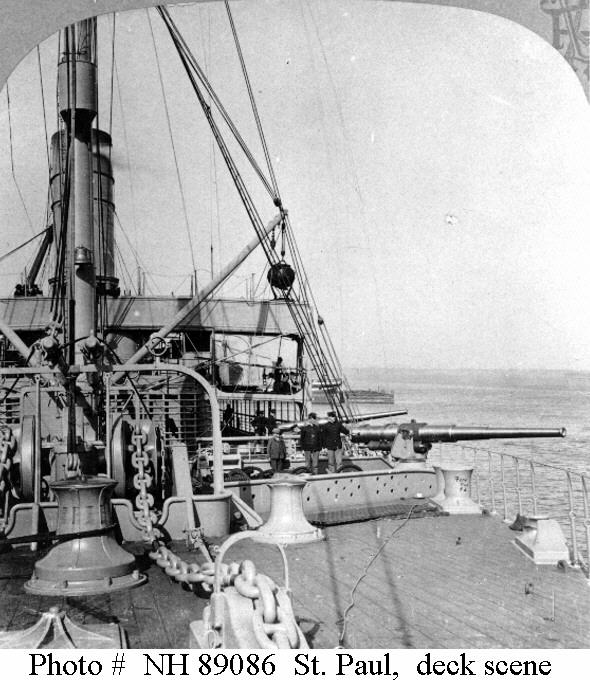 USS St. Paul (1898) Photographed at the end of the Spanish-American War. U.S. Naval Historical Center Photograph #NH 59924. |