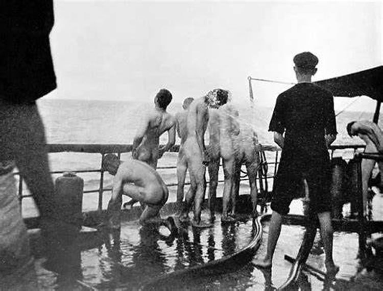 USS Yankee, morning bath, between 1898 and 1901. Reproduction Number: LC-DIG-det-4a05515 via loc.gov | Detroit Publishing Co. | |