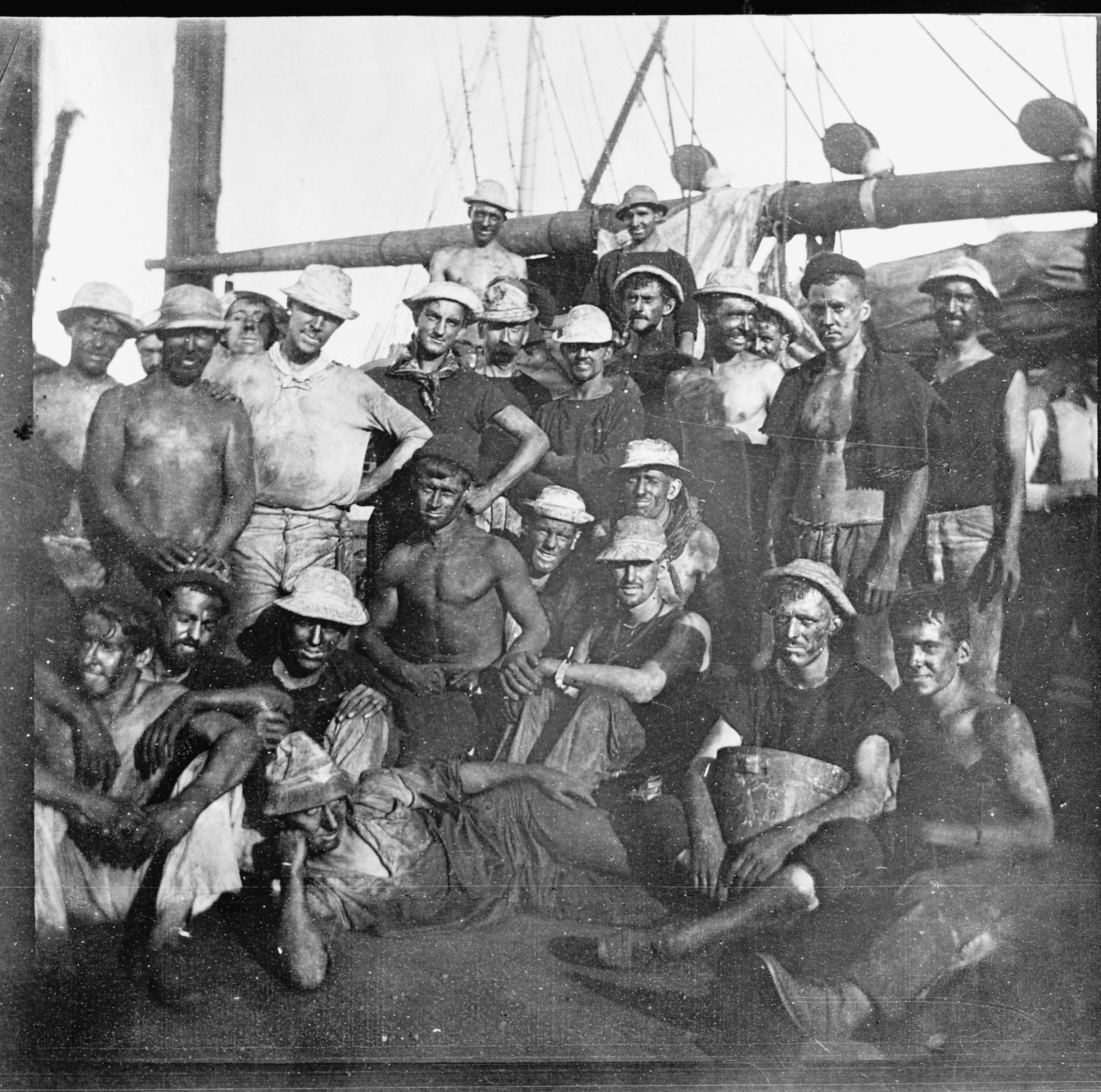 USS Yankee, crew after 48 hours coaling, between 1898 and 1901. Reproduction Number: LC-DIG-det-4a05518 via loc.gov | Detroit Publishing Co. | |