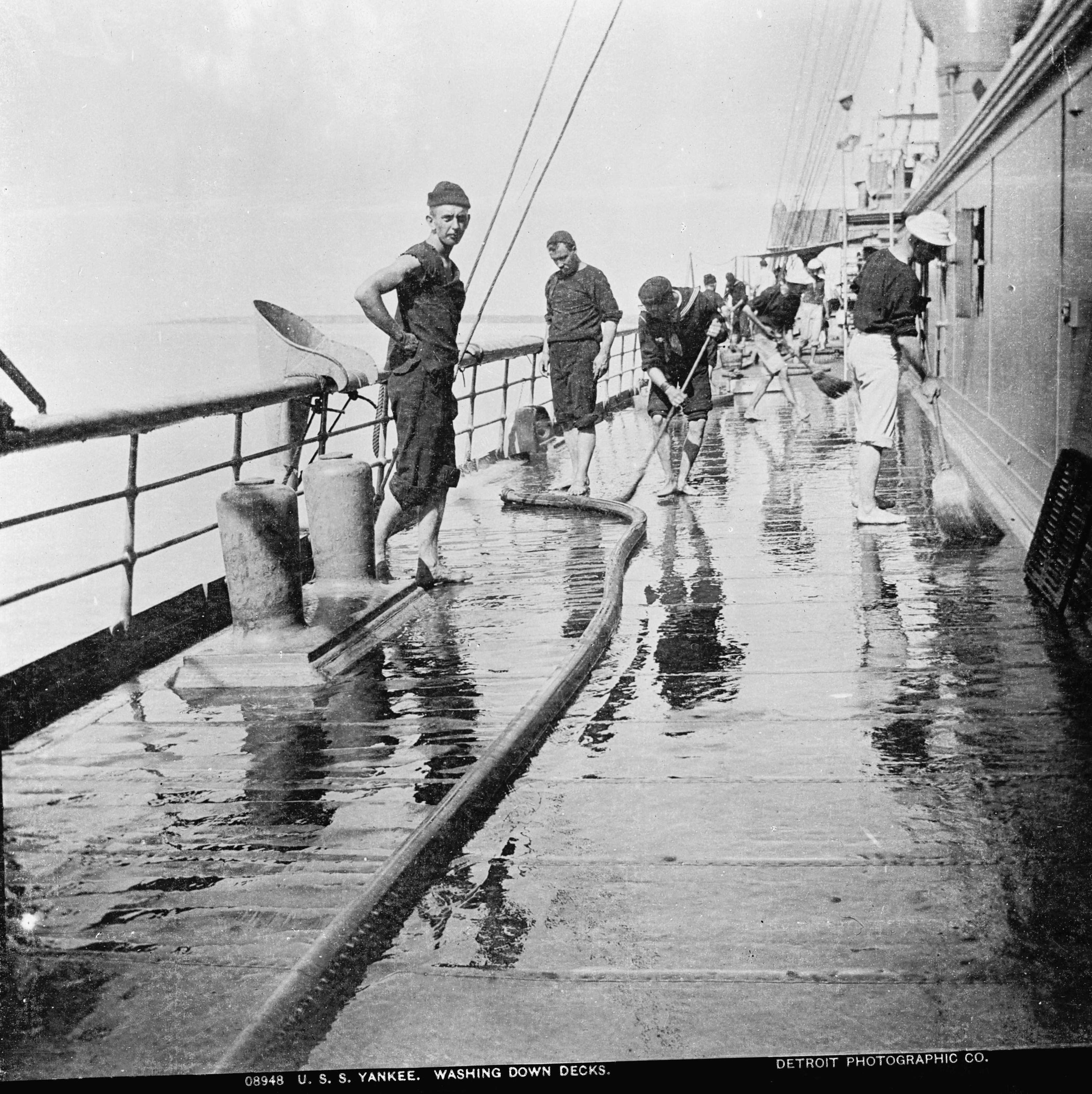 USS Yankee, washing down decks, between 1898 and 1901. Reproduction Number: LC-DIG-det-4a05516 via loc.gov | Detroit Publishing Co. | |