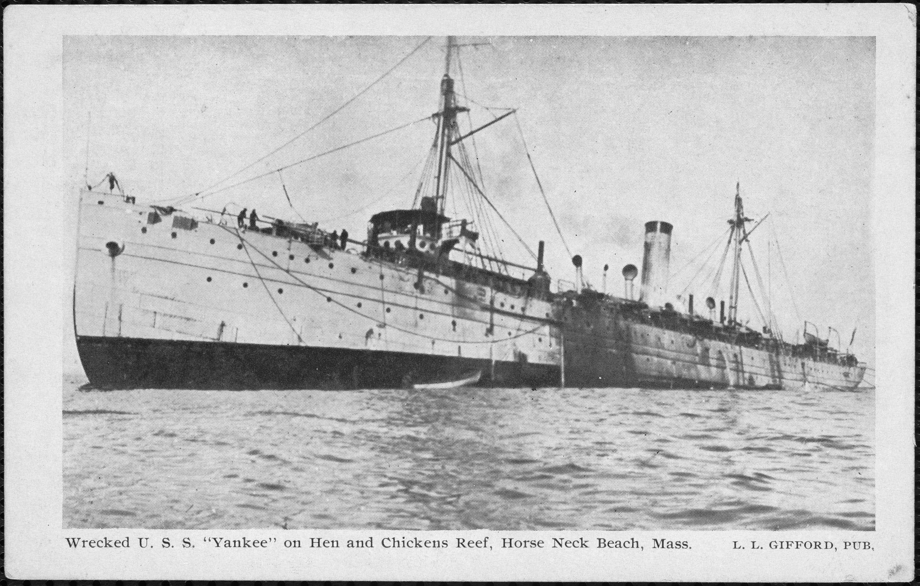 1.24k | Wrecked U.S.S. Yankee on Hen and Chicken Reef, Horseneck Beach, Mass. | Image and text provided by digitalcommonwealth.org via Robert Hurst. | |