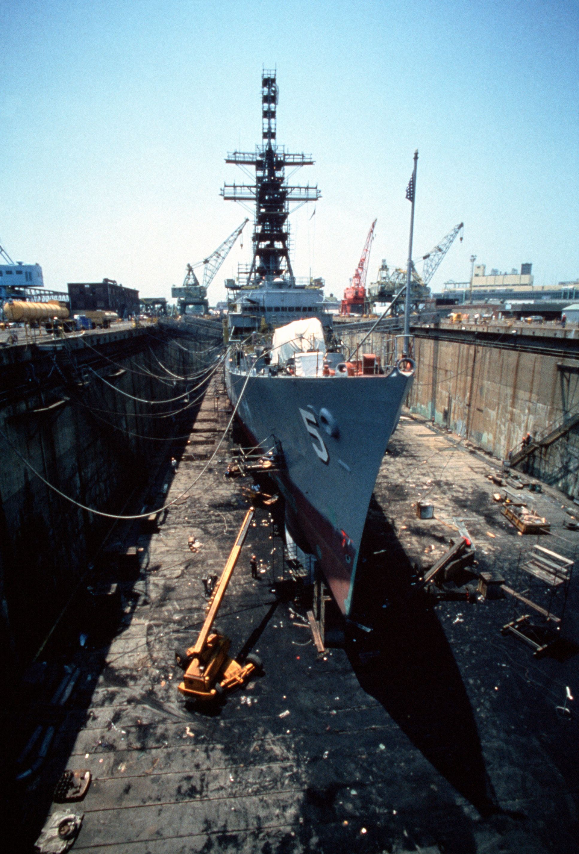 | 132k | September 1982, the USS Claude V. Ricketts (DDG-5) in drydock at the Norfolk Naval Shipyard. | Gerd Matthes |