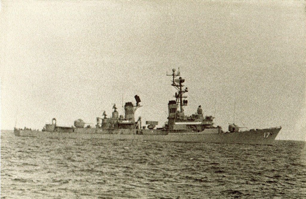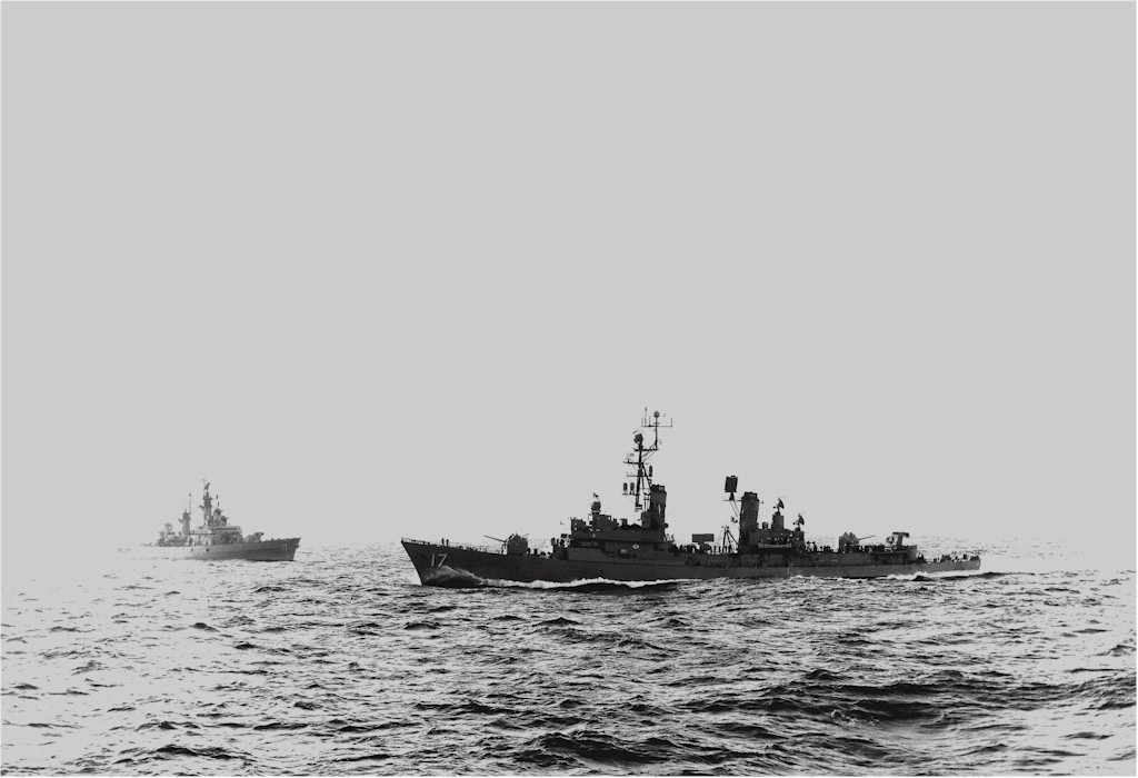 | 260k | Eastern part of the Mediterranean Sea. DDG-17 steams with the Kennedy Battle Group southward of Gavdos Island during the Arab - Israeli War in October 1973. The photo was taken from the Soviet Kashin class DDG Krasny Krim as she shadowed the Battle Group. | Eugene Ivkin |