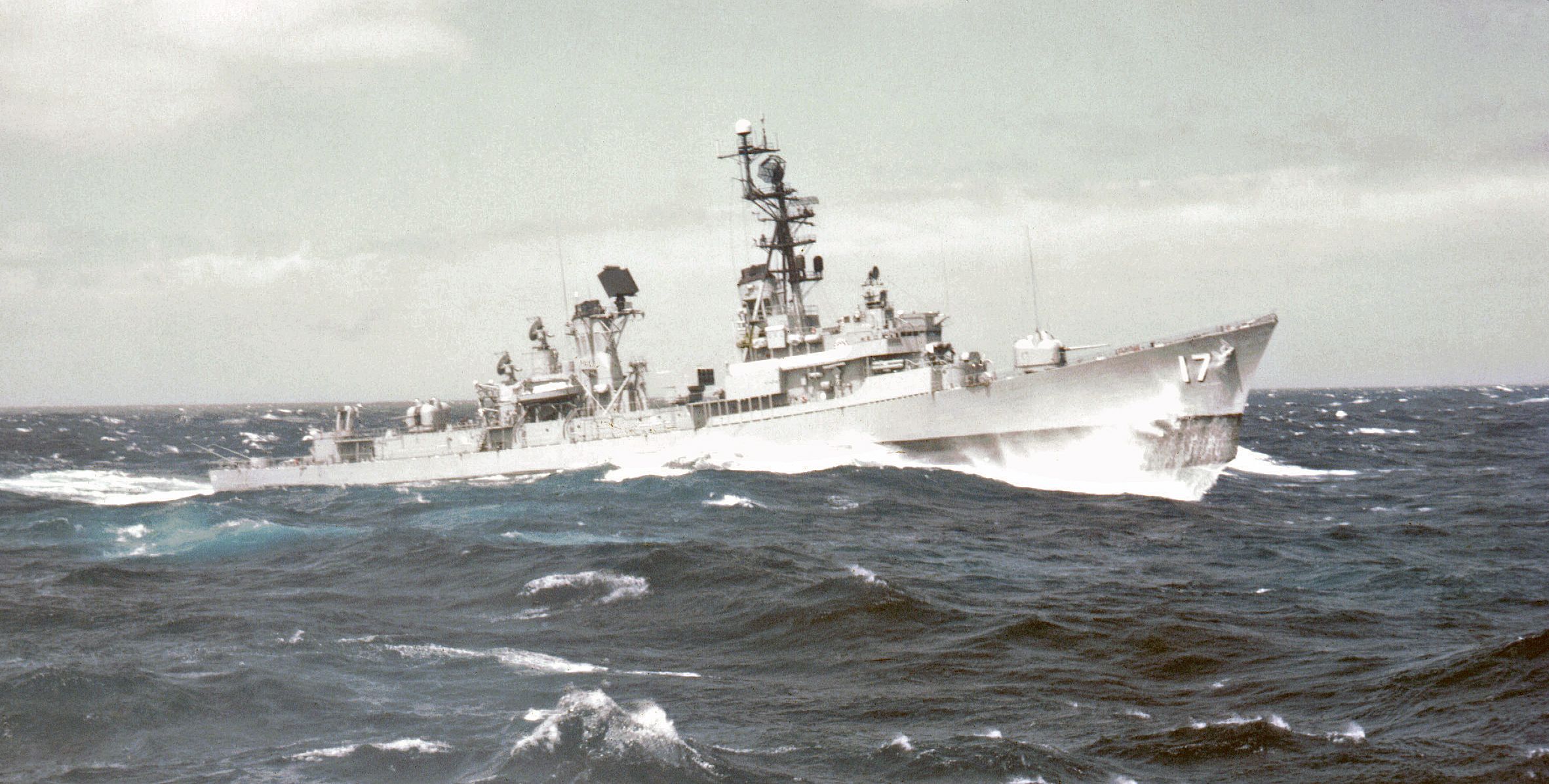 | 430k | Dramatic shot of USS Conyngham in the Spring of 1973, during a transit of the Atlantic (Norfolk to Rota), taken from the USS Elmer Montgomery (DE-1082). Photo copyright CAPT Richard Gibson USN (Ret.) | CAPT Richard Gibson USN (Ret.) |