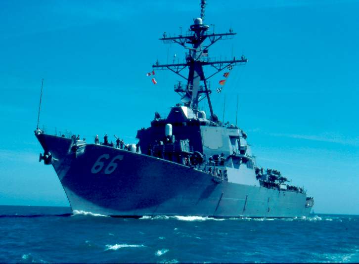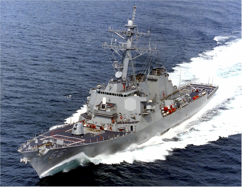 | 154k | USS Gonzalez (DDG 66) underway at high speed during the builder's sea trials, May 3 1996. U.S. Navy Photo. | Robert Hurst/Tom Langford |