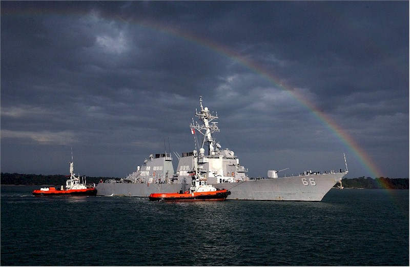 | 98k | Mombasa, Kenya July 6 2005, a rainbow arches over the guided missile destroyer USS Gonzalez (DDG 66) as it pulls into the Port of Mombasa, Kenya for an overnight port call. The visit marks the first time a U.S. Naval ship has visited Mombasa since 1999. | Fred Weiss |