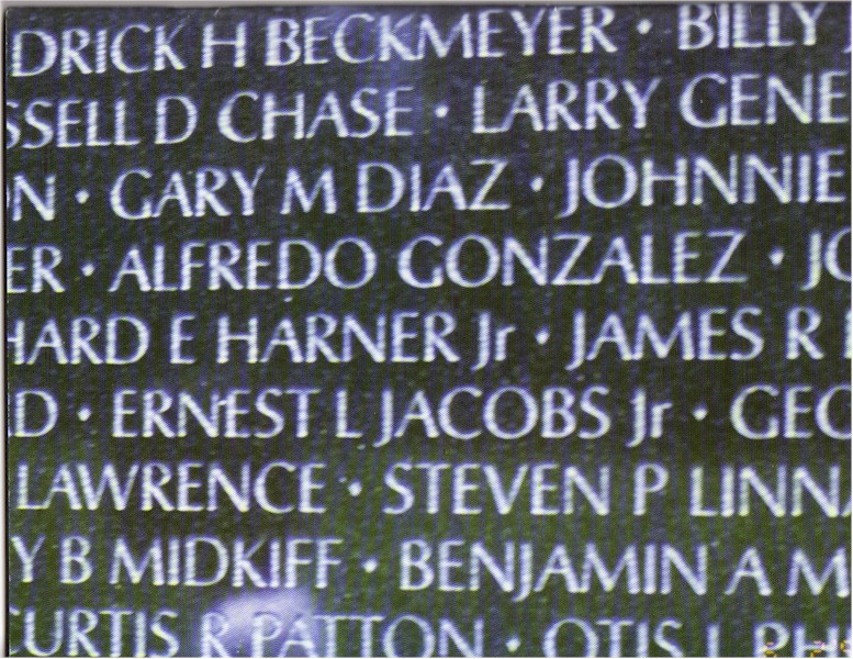 | 187k | "The Wall" at the Vietnam War Memorial in Washington, D.C. showing the name of Alfredo Gonzalez. | Robert M. Cieri |