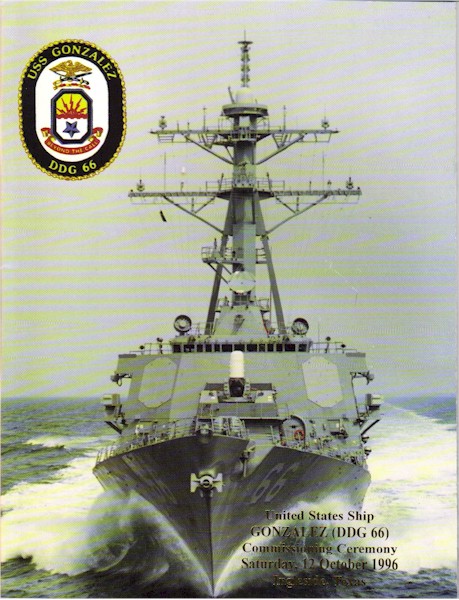 | 86k | Program for the Commissioning Ceremony for the USS Gonzalez DDG-66. The event was held at Ingleside, Texas on Saturday, 12 October 1996. | Robert M. Cieri |