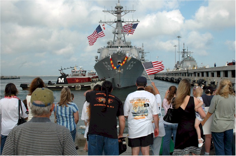 | 100k | 060817-N-5681S-050. Norfolk, Va., 17 August 2006, the guided-missile destroyer USS Gonzalez (DDG 66), mooring at Naval Station Norfolk, as family and friends look on. U.S. Navy photo by Mass Communication Specialist Seaman Michael Starkey. | Robert M. Cieri |