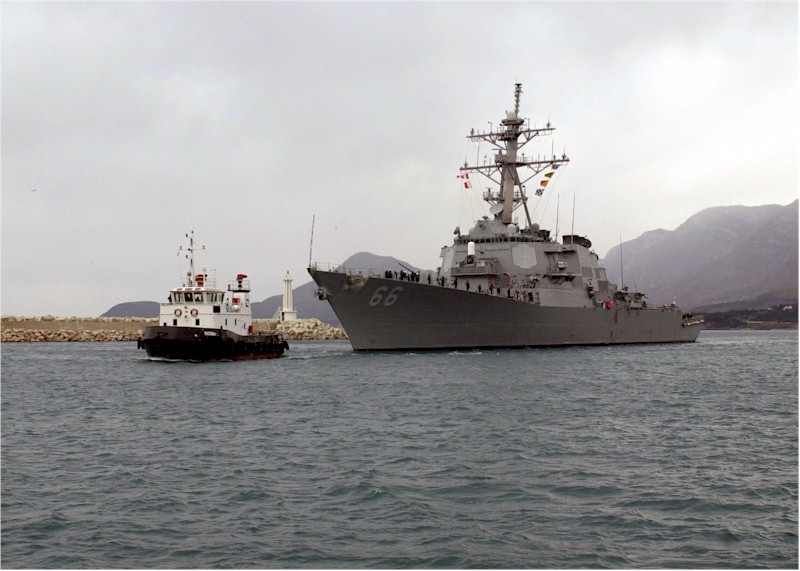 | 98k | 050706-N-0401E-004. Mombasa, Kenya, 6 July 2005, the guided-missile destroyer USS Gonzalez (DDG 66) pulls into the port of Mombasa, Kenya for an overnight port call. Gonzalez is currently deployed to the Fifth Fleet area of responsibility as part of the USS Kearsarge Expeditionary Strike Group and is participating in coalition maritime security operations (MSO). MSO set the conditions for security and stability in the maritime environment as well as complement the counter-terrorism and security efforts of regional nations. MSO deny international terrorists use of the maritime environment as an avenue of attack or to transport personnel, weapons, or other material. U.S. Navy photo by Journalist 1st Class Wes Eplen. | Robert M. Cieri |
