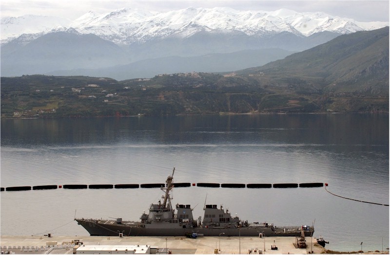 | 91k | 040120-N-0780F-012. Souda Bay, Crete, Greece, 20 January 2004, USS Gonzalez (DDG 66) moored at the Marathi NATO pier facility during a brief port visit at Souday Bay. U.S. Navy photo by Paul Farley. | Robert M. Cieri |