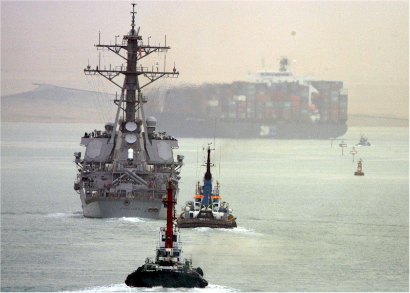 | 111k | 050422-N-7365V-081. Suez Canal, 22 April 2005, the guided-missile destroyer USS Gonzalez (DDG 66) transits the Suez Canal. Gonzalez is assigned to the USS Kearsarge Expeditionary Strike Group on a scheduled deployment in support of the Global War on Terrorism. U.S. Navy photo by Photographer’s Mate Airman Apprentice Dennard Vinson. | Robert M. Cieri |