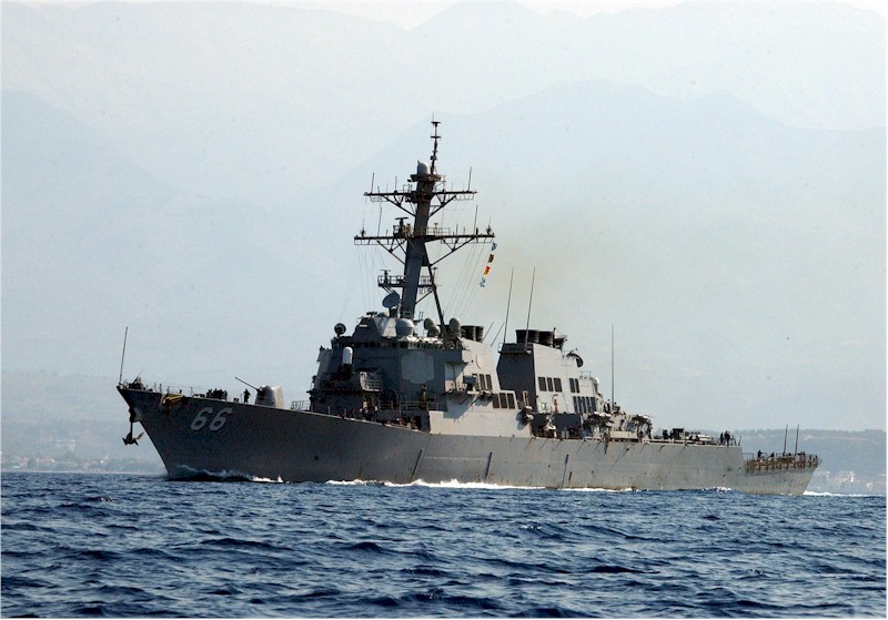 | 109k | 060717-N-0780F-002. Souda Bay, Crete, Greece, 17 July 2006, the guided-missile destroyer USS Gonzalez (DDG 66) gets underway following a brief port visit to Souda Bay, Crete. Gonzalez has been assigned escort duties in support of the evacuation of U.S. citizens out of Lebanon. At the request of the U.S. Ambassador to Lebanon and at the direction of the Secretary of Defense, the United States Central Command and U.S. Marines are assisting with the authorized departure of U.S. citizens from Lebanon. U.S. Navy photo by Mr. Paul Farley. | Robert M. Cieri |
