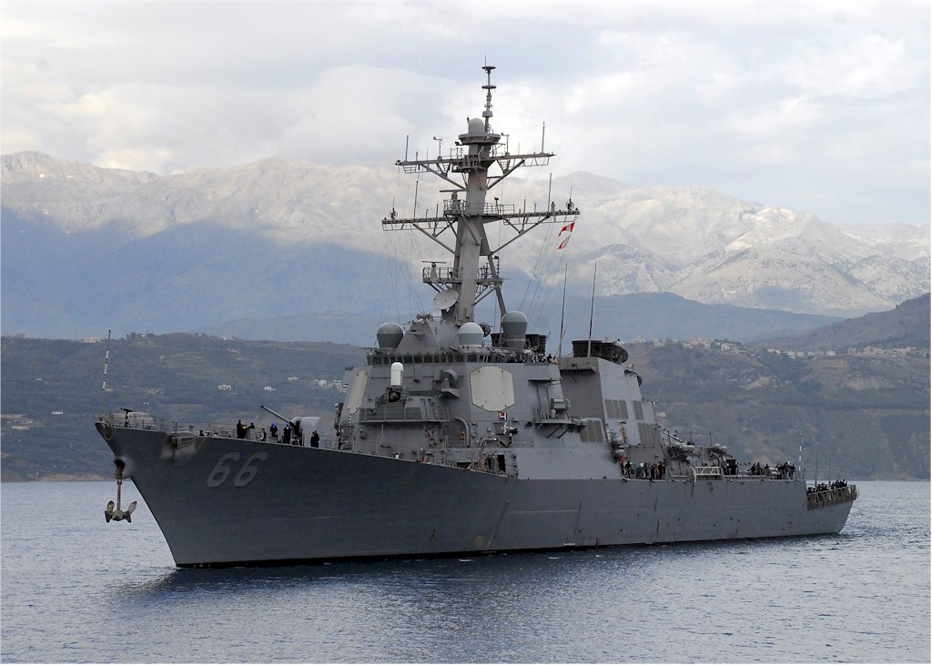 | 145k | 080725-N-0780F-001. Souda Bay, Crete, July 25 2008, the guided-missile destroyer USS Gonzalez (DDG 66) arrives in Souda Harbor for a routine port visit. Gonzalez is on a scheduled six-month deployment and assigned to Standing NATO Maritime Group (SNMG) 2 as the U.S. Navy representative to the NATO Response Force. U.S. Navy photo by Paul Farley. | Robert M. Cieri |