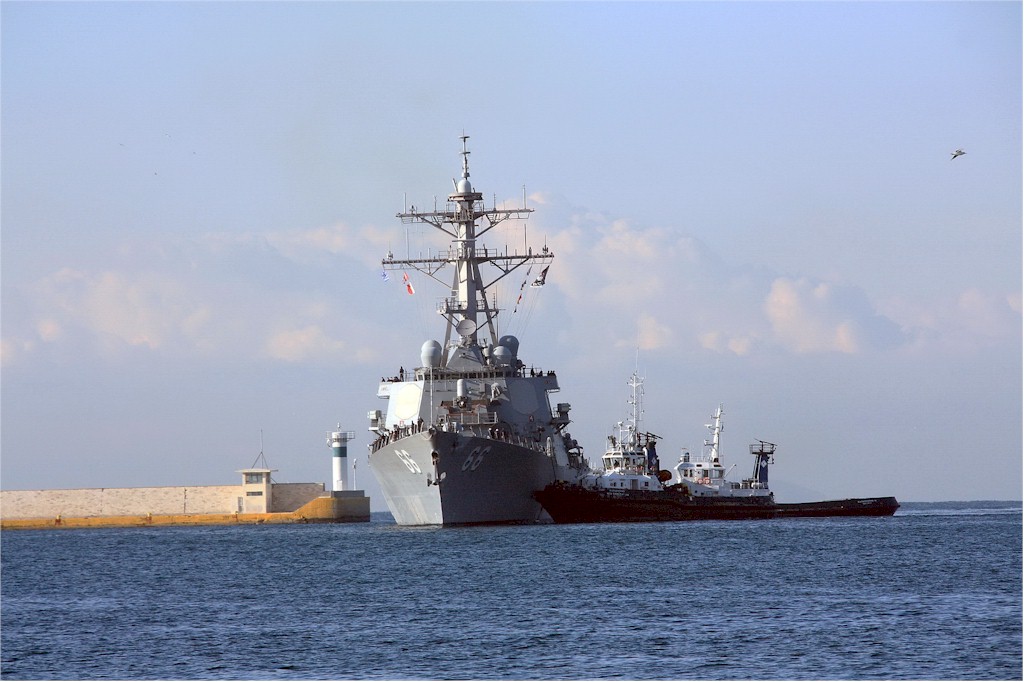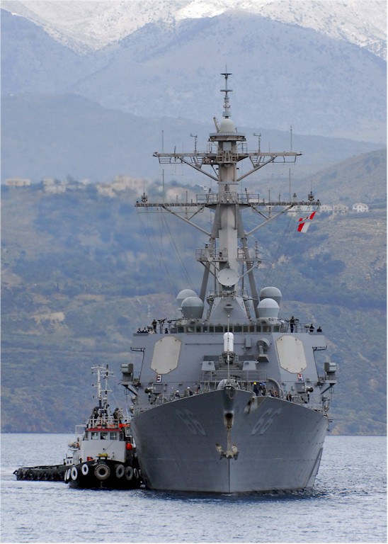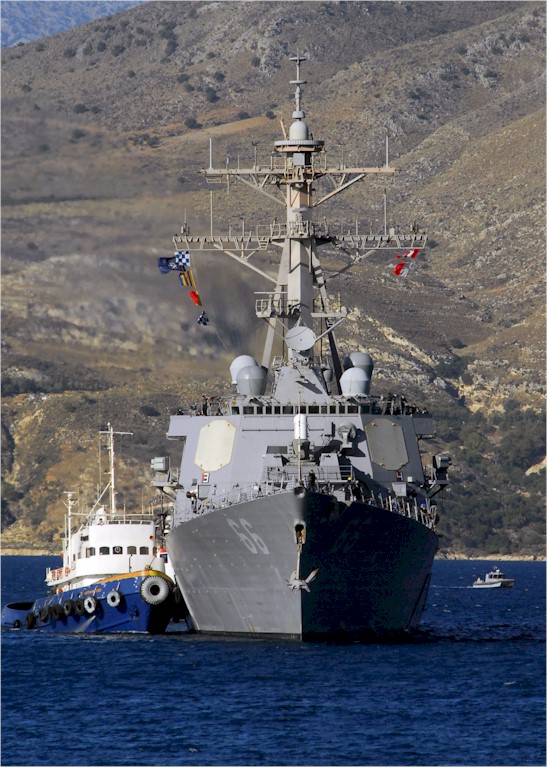 | 101k | 080606-N-0780F-002. Souda Bay, Crete, June 6 2008, the guided-missile destroyer USS Gonzalez (DDG 66) arrives in Souda harbor for a routine port visit, as tugs assist her to a berth. Gonzalez is on a scheduled six-month deployment assigned to Standing NATO Maritime Group (SNMG2) as the Navy representative to the NATO Response Force. U.S. Navy photo by Paul Farley. | Robert M. Cieri |