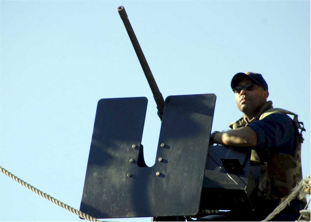 | 100k | 080725-N-0780F-004. Souda Bay, Crete, July 25 2008, a Gunners Mate mans a topside 50-caliber machine gun security post as the guided-missile destroyer USS Gonzalez (DDG 66) arrives for a routine port visit at Souda. U.S. Navy photo by Paul Farley. | Robert M. Cieri |