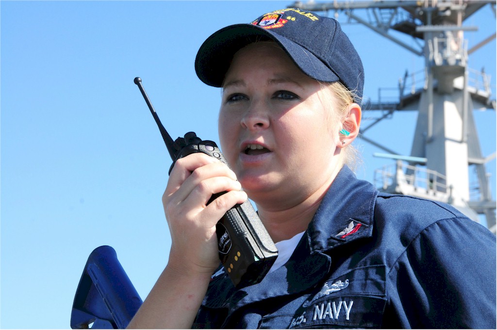 | 142k | 081016-N-1831S-025. Norfolk, Va., October 16 2008, Cryptologic Technician Technical 2nd class Marie E. Shirk calls in a small watercraft approaching the guided-missile destroyer USS Gonzalez (DDG 66). Gonzalez is participating in the testing of the Citadel Protect '08 Antiterrorism ashore and afloat exercise. U.S. Navy photo by Mass Communication Specialist Seaman Apprentice Ash Severe. | Bill Gonyo |