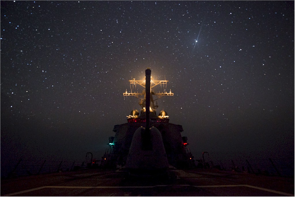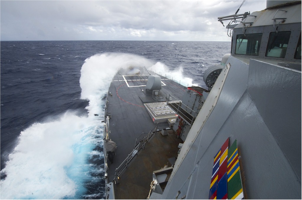 | 145k | 160130-N-VE959-013. Indian Ocean, January 30 2016, guided-missile destroyer USS Gonzalez (DDG 66) transits the Indian Ocean. Gonzalez is deployed as part of the Harry S. Truman Carrier Strike Group, supporting maritime security operations and theater security cooperation efforts in the U.S. 5th Fleet area of operations. U.S. Navy photo by Mass Communication Specialist 3rd Class Pasquale Sena. | Ron Reeves |