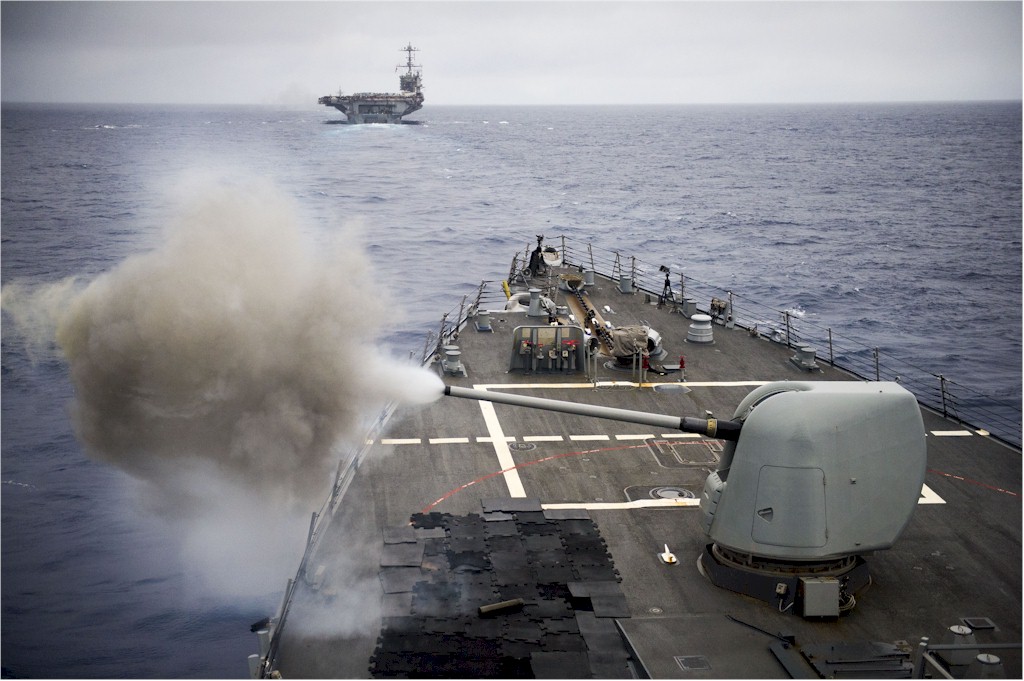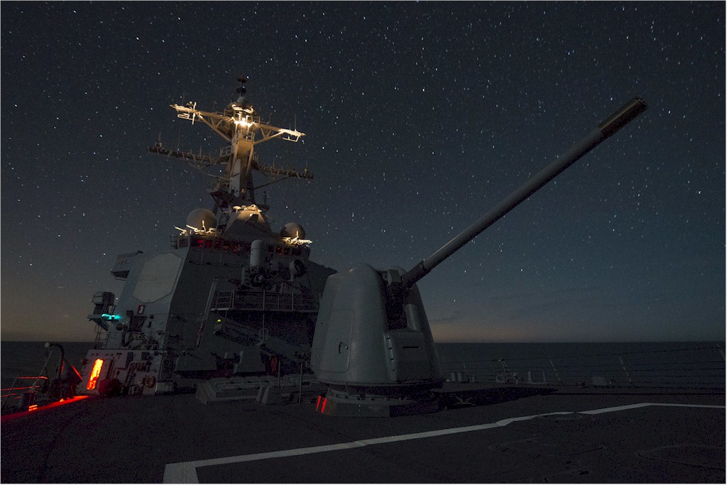 | 76k | 160301-N-VE959-030. Arabian Gulf, March 1 2016, the Guided-missile destroyer USS Gonzalez (DDG 66) conducts a live-fire exercise using a MK 45 5-inch gun. Gonzalez is deployed as part of the Harry S. Truman Carrier Strike Group in support of Operation Inherent Resolve, maritime security operations and theater security cooperation efforts in the U.S. 5th Fleet area of operations. U.S. Navy photo by Mass Communication Specialist 3rd Class Pasquale Sena. | Ron Reeves |