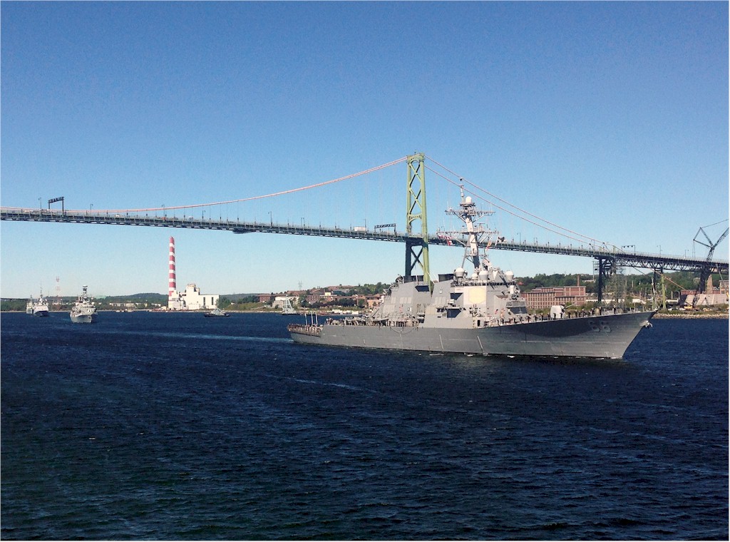 | 204k | 160912-N-RI307-020. Halifax, Nova Scotia, September 12 2016, guided missile destroyer USS Gonzalez (DDG 66) passes beneath the McDonald Bridge during a passing exercise to begin the at-sea phase of Exercise Cutlass Fury 2016. Hosted by Maritime Forces Atlantic and executed by Canadian Fleet Atlantic, Cutlass Fury16 is a combined, joint, maritime exercise designed to promote and enhance regional cooperation of Maritime partners with an interest in Atlantic Security off the east coast of North America. U.S. Navy Photo by Lt. Cmdr. Candice Tresch. | Ron Reeves |