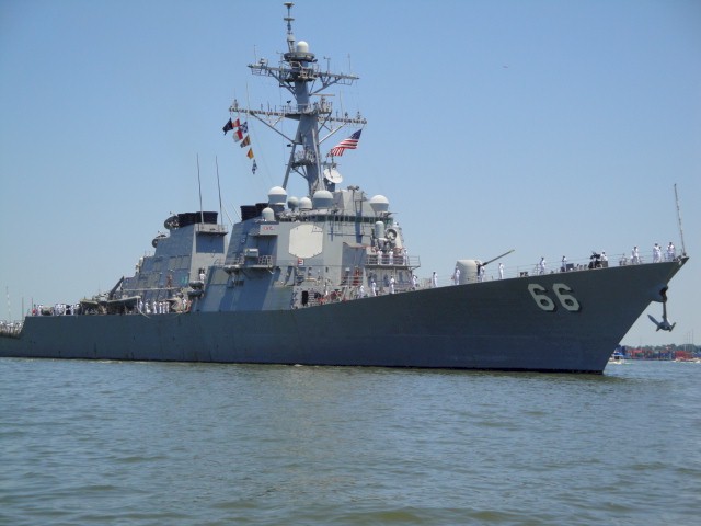 | 159k | 151116-N-VE959-448. Atlantic Ocean, November 16 2015, guided-missile destroyer USS Gonzalez (DDG 66) transits the Atlantic Ocean. Gonzalez is deployed with the Harry S. Truman Carrier Strike Group in support of maritime security operations and theater security cooperation efforts in the U.S. 5th and 6th Fleet areas of responsibility. U.S. Navy photo by Mass Communication Specialist 3rd Class P. Sena. | Ron Reeves |