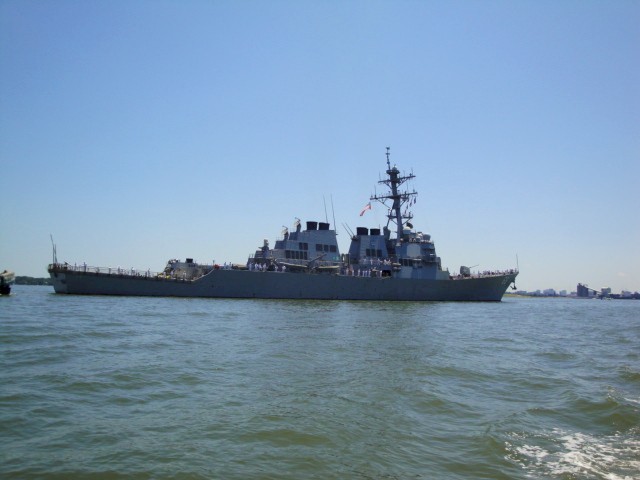 | 143k | 080725-N-0780F-002. Souda Bay, Crete, July 25 2008, the guided-missile destroyer USS Gonzalez (DDG 66) arrives in Souda Harbor for a routine port visit. Gonzalez has a crew size of 340 and is homeported in Norfolk, Va. and is on a scheduled six-month deployment and assigned to Standing NATO Maritime Group (SNMG) 2 as the U.S. Navy representative to the NATO Response Force. U.S. Navy photo by Paul Farley. | Robert M. Cieri |