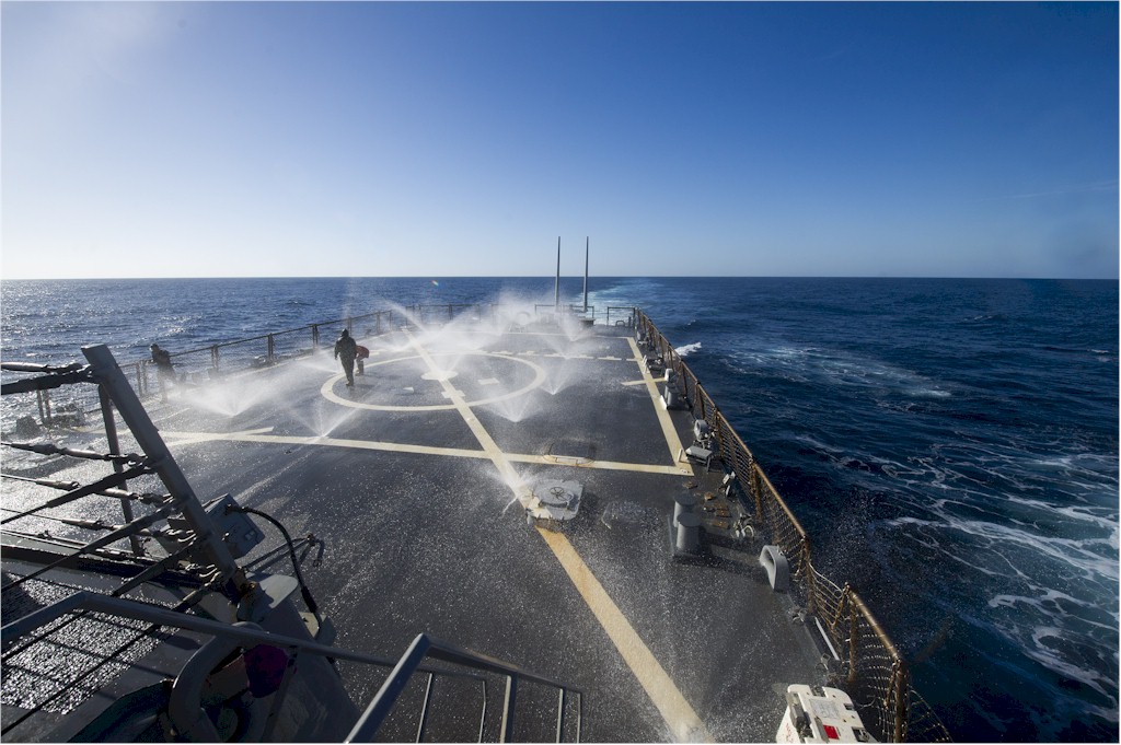 | 182k | 151130-N-VE959-236. Mediterranean Sea, November 30 2015, guided-missile destroyer USS Gonzalez (DDG 66) undergoes a counter measure wash down. Gonzalez, part of the Harry S. Truman Carrier Strike Group, is conducting naval operations in the U.S. 6th Fleet area of operations in support of U.S. national security interests in Europe and Africa. U.S. Navy photo by Mass Communication Specialist 3rd Class P. Sena. | Ron Reeves |