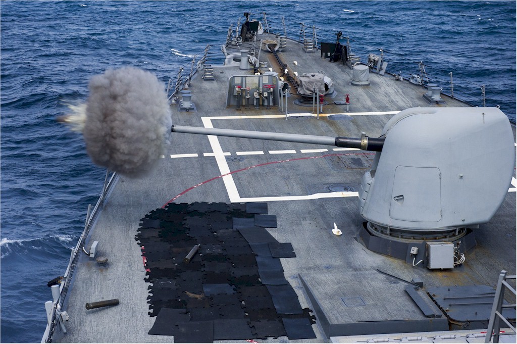 | 156k | 160704-N-VE959-240. Atlantic Ocean, July 4 2016, the guided-missile destroyer USS Gonzalez (DDG 66) Mark 45 5-inch lightweight gun during a live-fire gunnery exercise. Gonzalez, part of the Harry S. Truman Carrier Strike Group is currently on an 8-month deployment to support maritime security operations and theater security cooperation efforts. U.S. Navy photo by Mass Communication Specialist 3rd Class Pasquale Sena. | Ron Reeves |